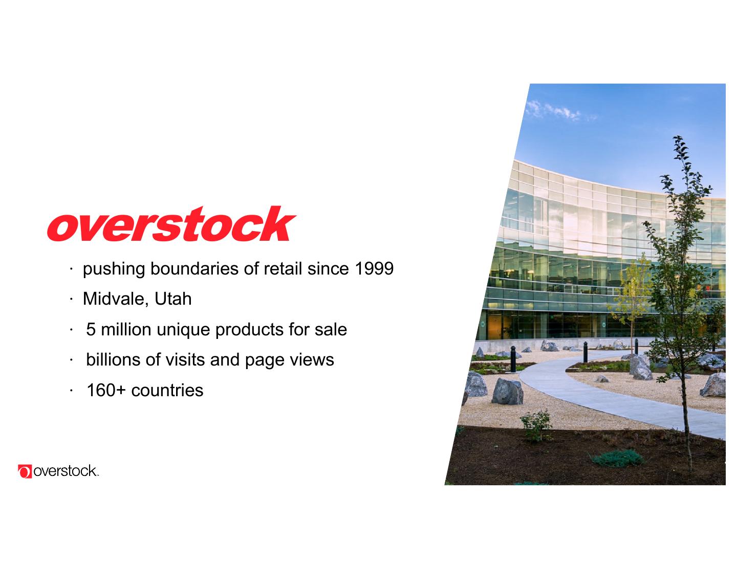 2 .© Overstock 2 overstock pushing boundaries of retail since 1999 Midvale, Utah 5 million unique products for sale billions of visits and page views 160+ countries