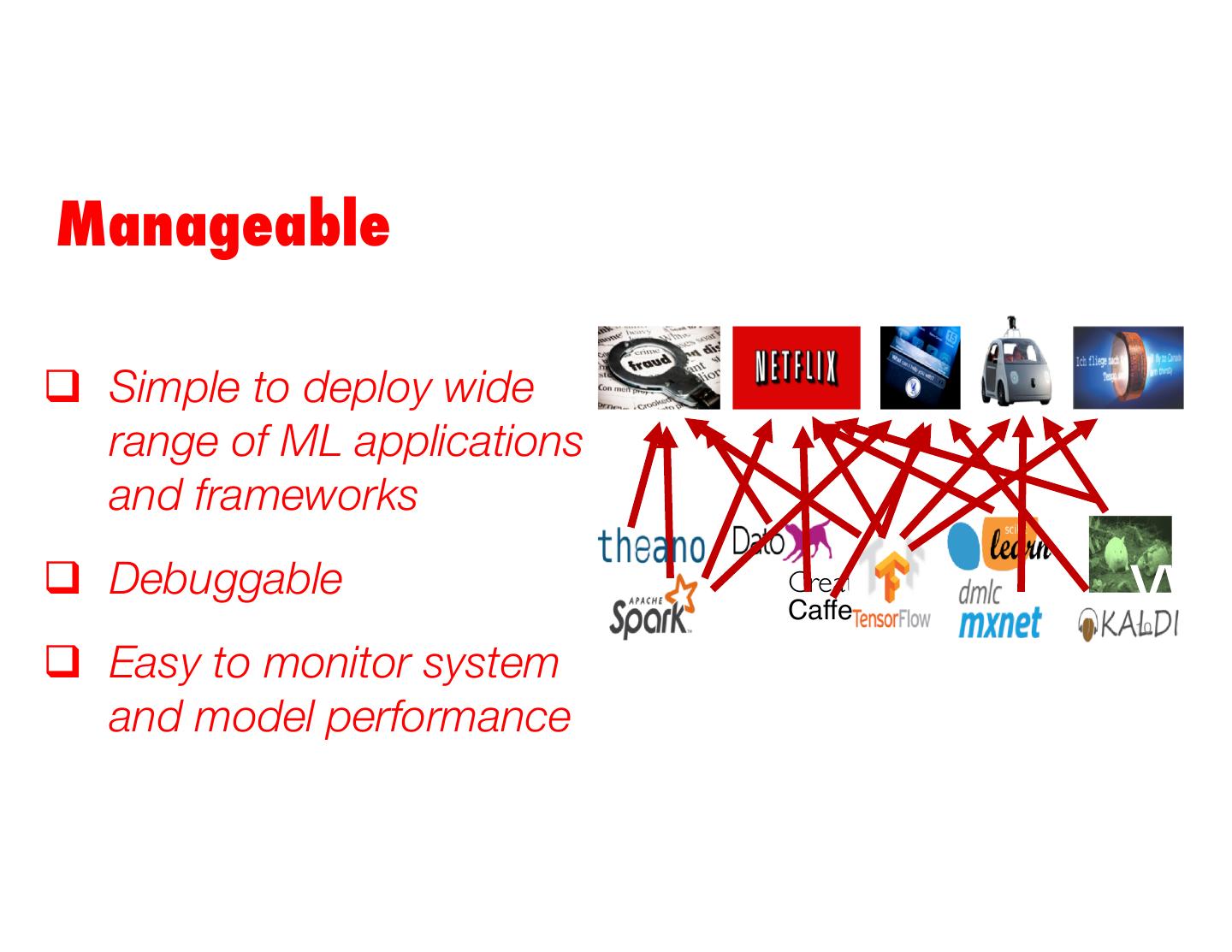 10 .Manageable q Simple to deploy wide range of ML applications and frameworks ??? q Debuggable Create VW Caffe 10 q Easy to monitor system and model performance