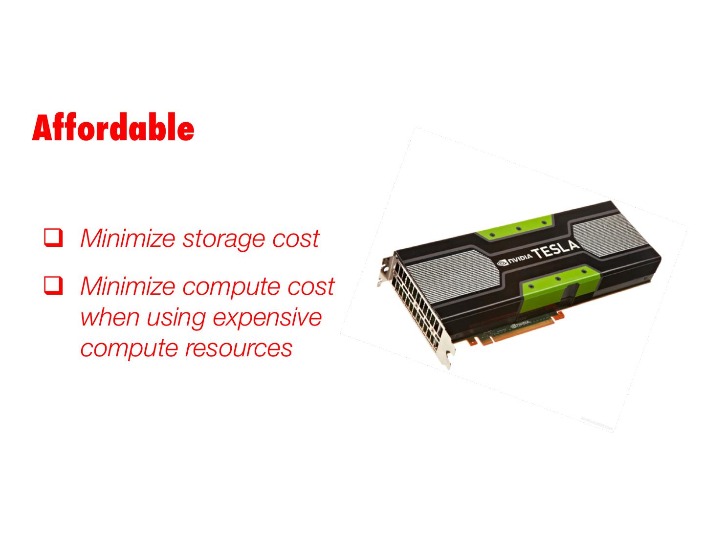 12 .Affordable q Minimize storage cost q Minimize compute cost when using expensive compute resources