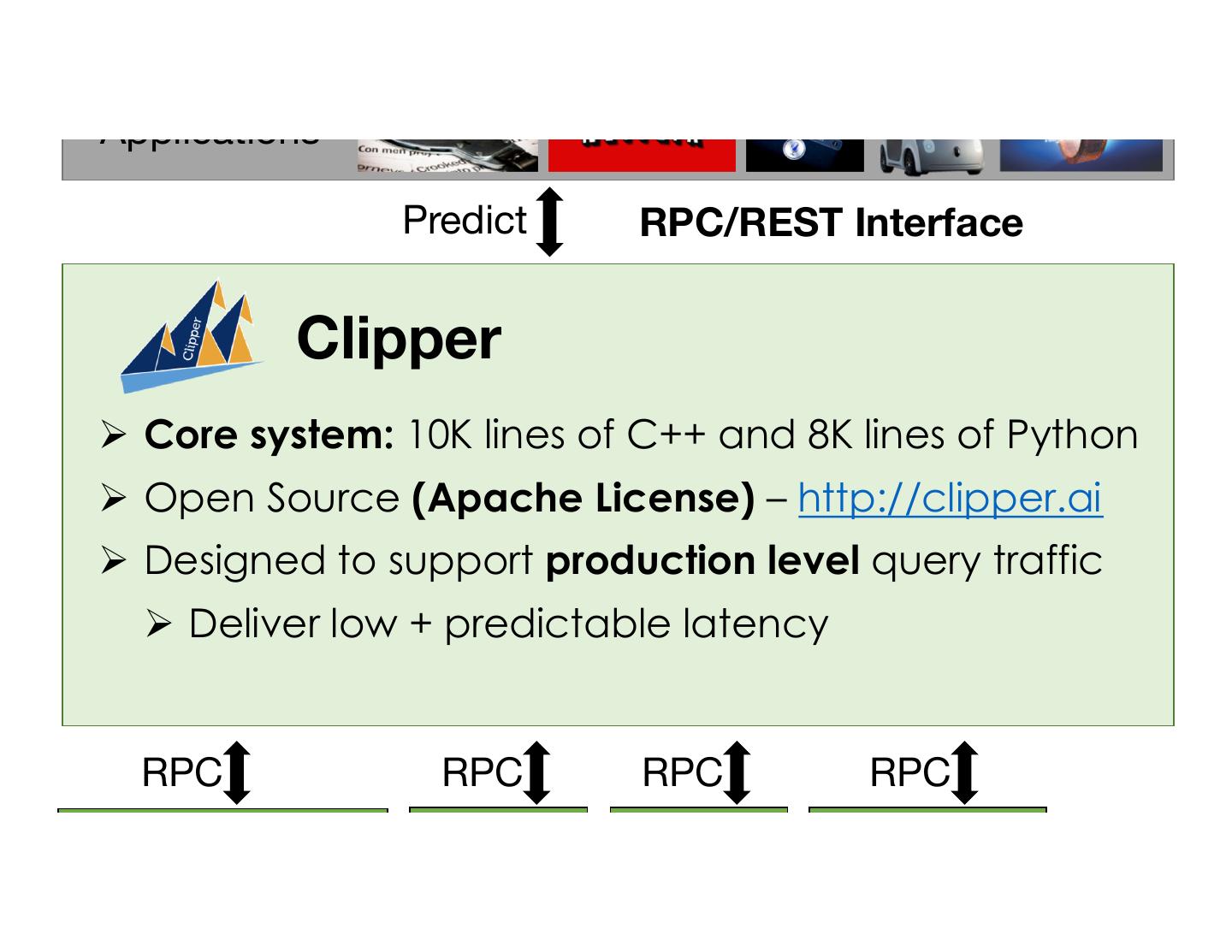 1 .Clipper A Low-Latency Online Prediction Serving System Dan Crankshaw crankshaw@cs.berkeley.edu http://clipper.ai https://github.com/ucbrise/clipper June 6, 2018