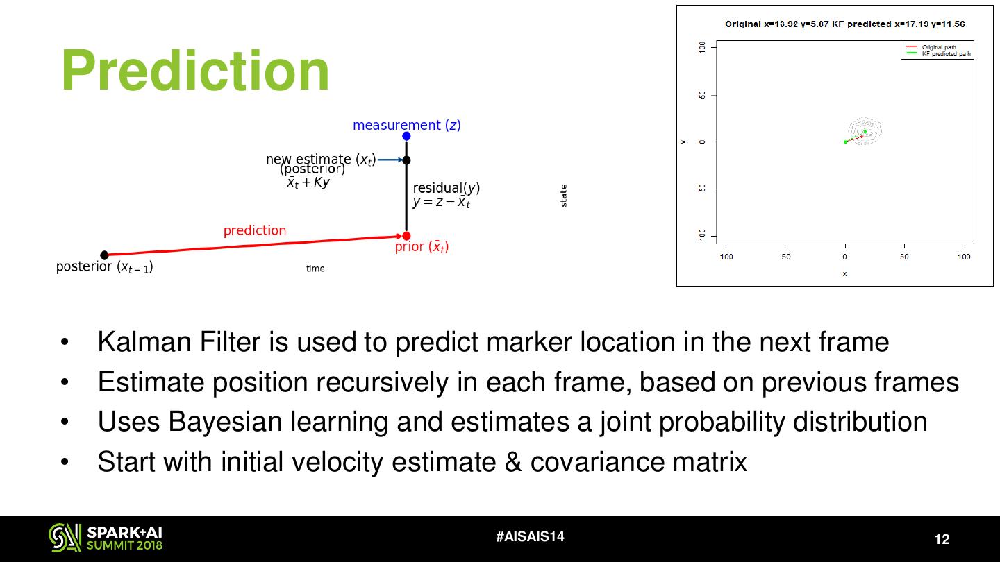 12 .Prediction • Kalman Filter is used to predict marker location in the next frame • Estimate position recursively in each frame, based on previous frames • Uses Bayesian learning and estimates a joint probability distribution • Start with initial velocity estimate & covariance matrix #AISAIS14 12