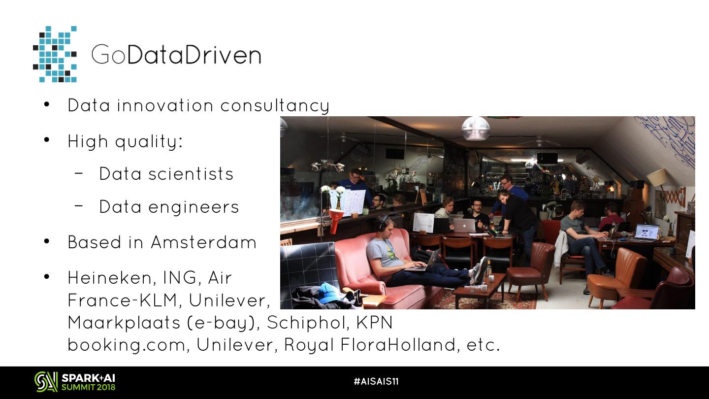 3 .● Data innovation consultancy ● High quality: – Data scientists – Data engineers ● Based in Amsterdam ● Heineken, ING, Air France-KLM, Unilever, Maarkplaats (e-bay), Schiphol, KPN booking.com, Unilever, Royal FloraHolland, etc. #AISAIS11