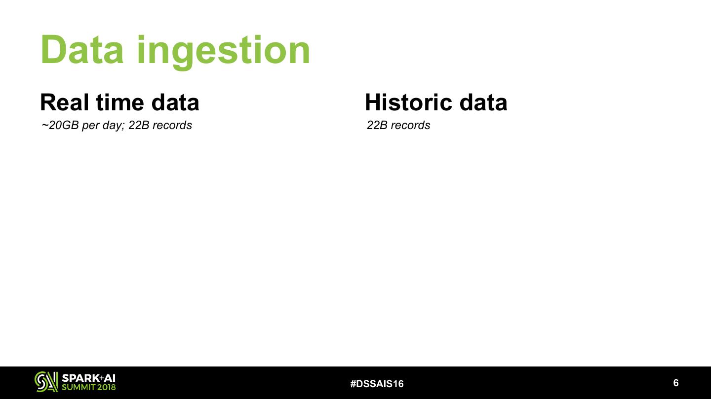 10 .Data ingestion Real time data Historic data ~20GB per day; 22B records 22B records #DSSAIS16 !6