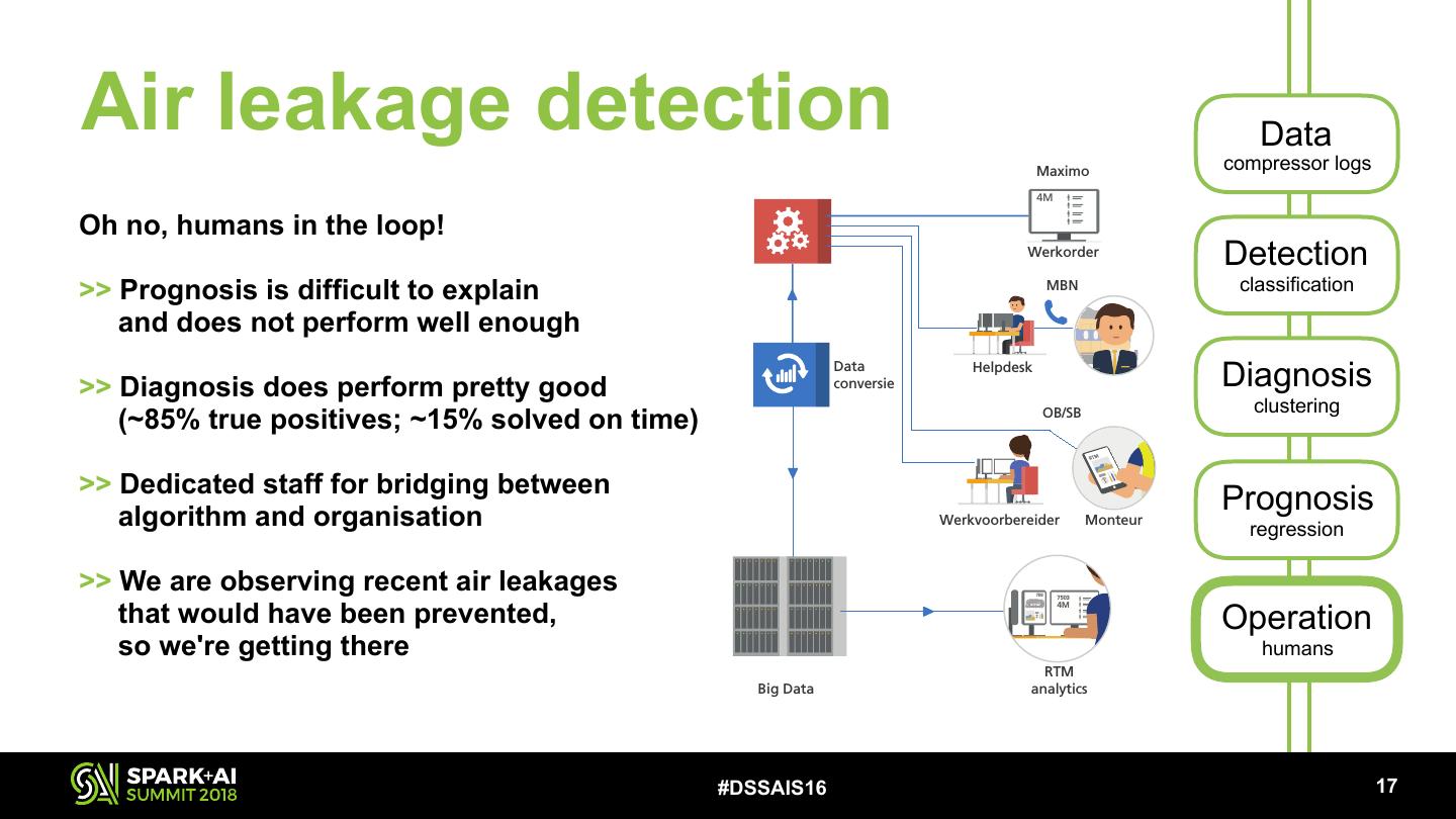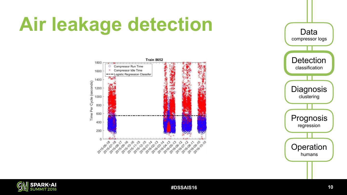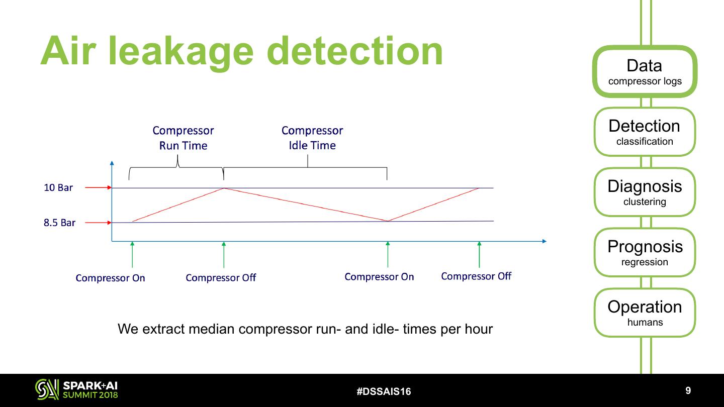 17 .Air leakage detection Data compressor logs Detection classification Diagnosis clustering Prognosis regression Operation humans #DSSAIS16 !8