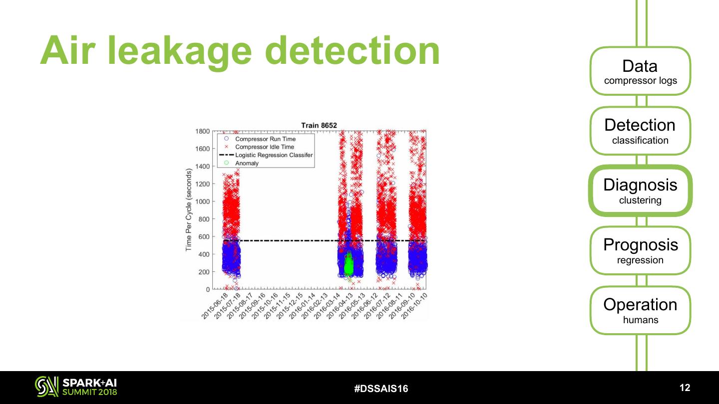 23 .Air leakage detection Data compressor logs Detection classification Diagnosis clustering Prognosis regression Operation humans #DSSAIS16 !12