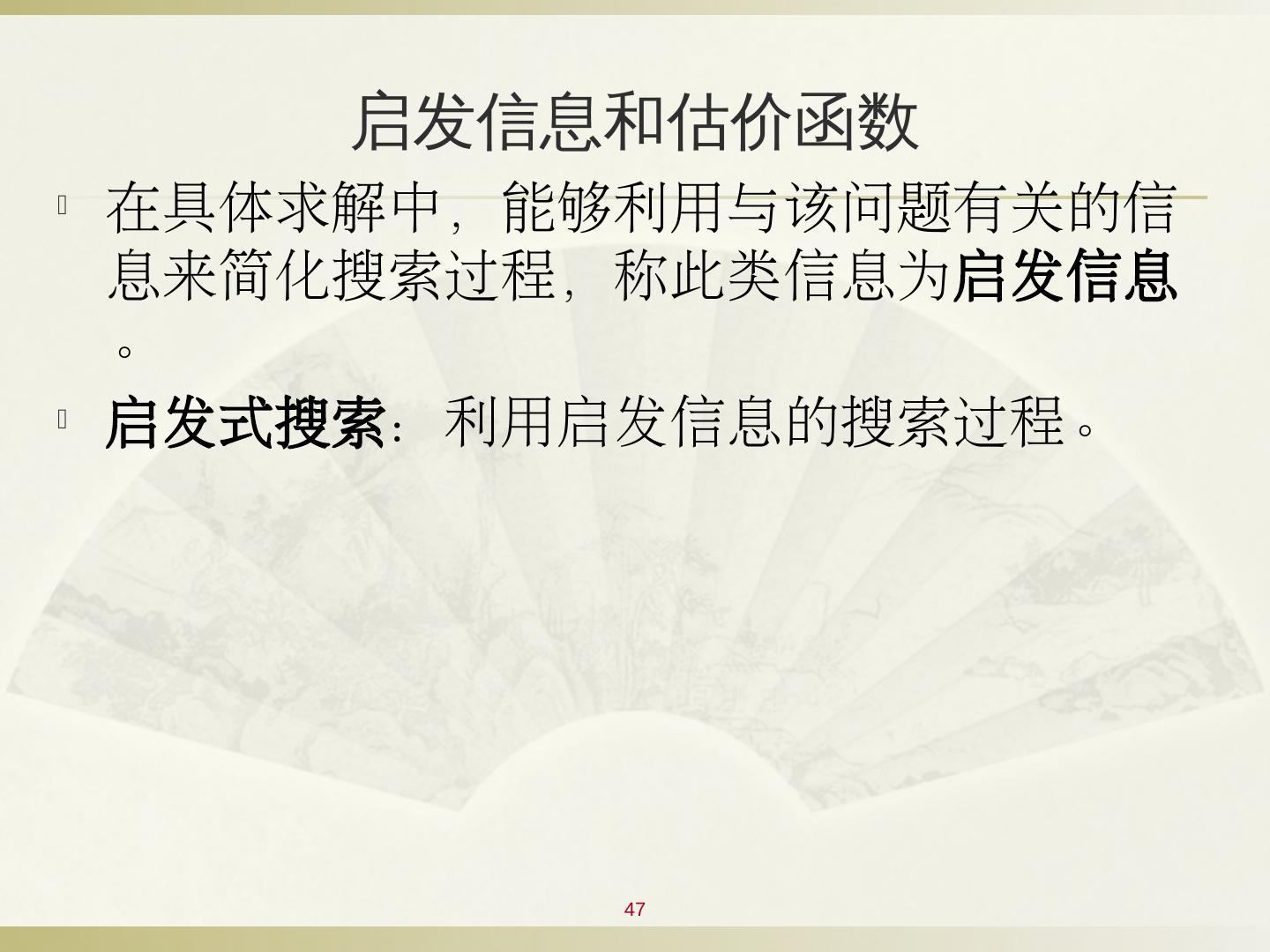 6 .6 求解路径 :从 结点到 结点的路径。 :状态空间的一个解。 状态空间的一个解 :一个有限的操作算子序列。