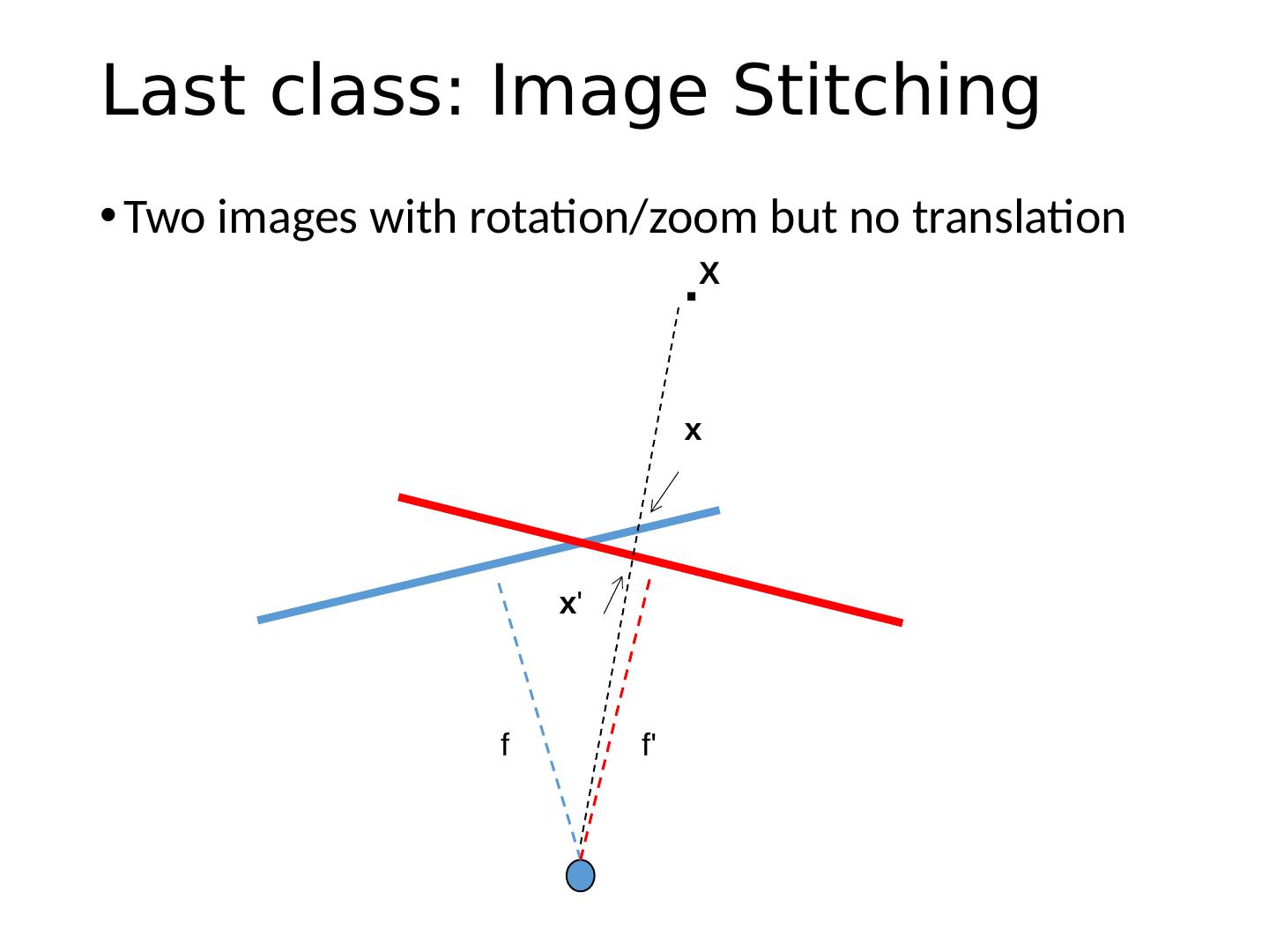 2 .Last class: Image Stitching Two images with rotation/zoom but no translation f f . x x X