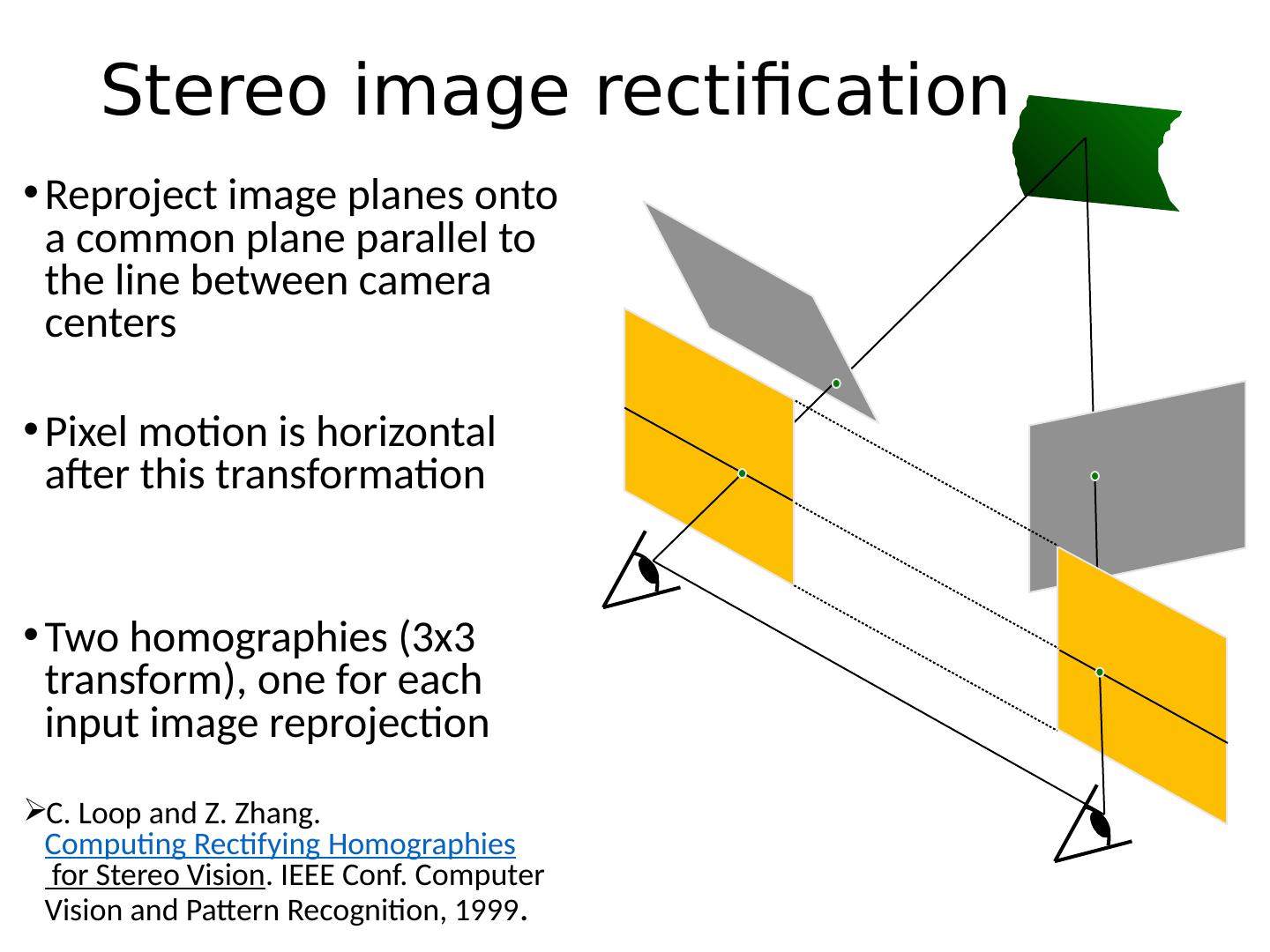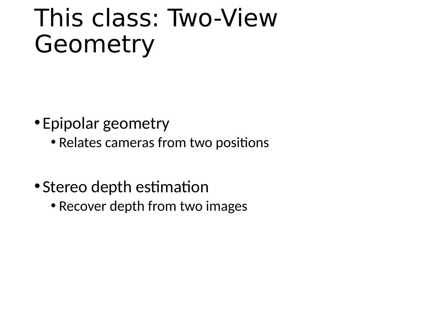 3 .This class: Two-View Geometry Epipolar geometry Relates cameras from two positions Stereo depth estimation Recover depth from two images