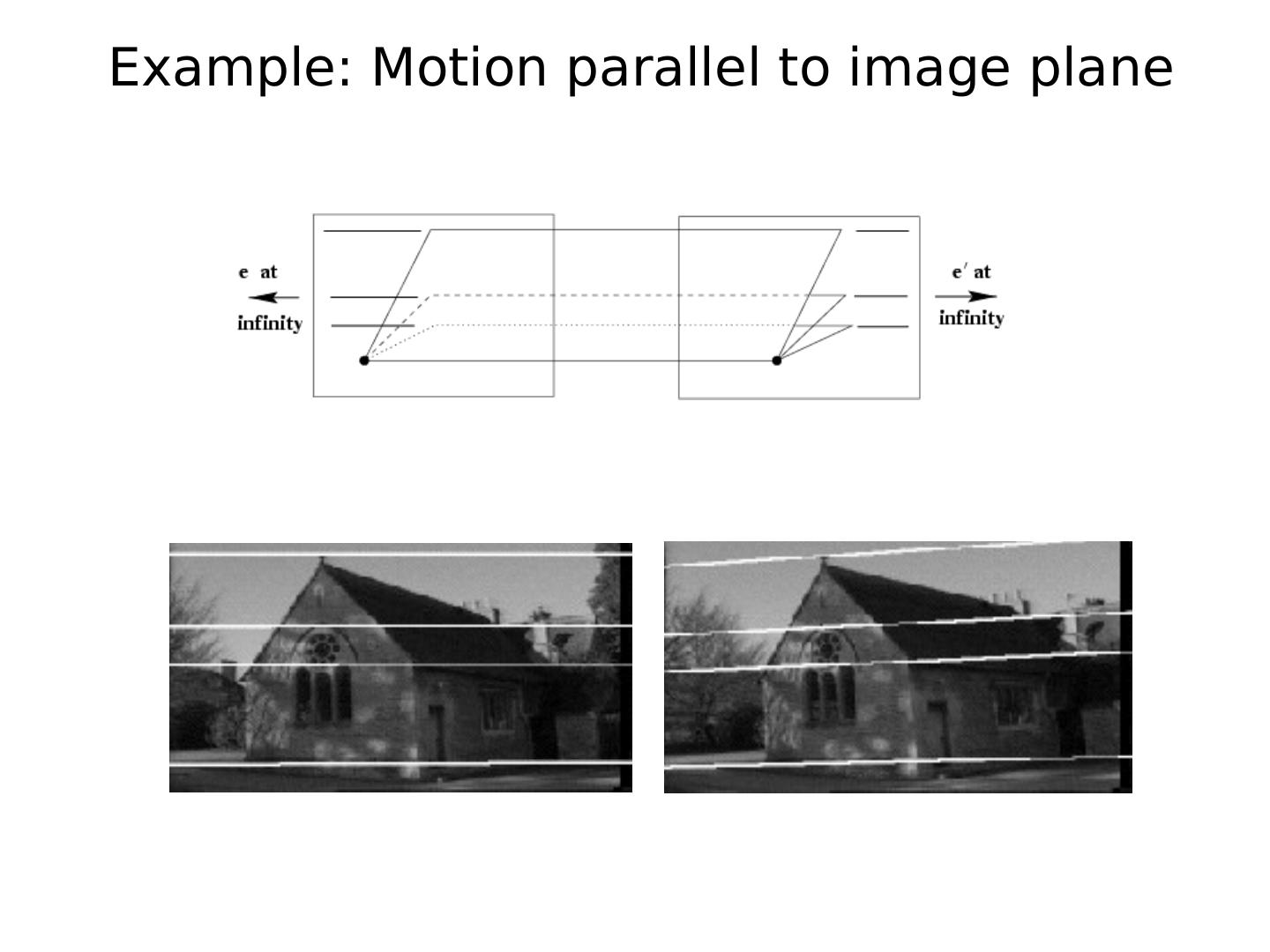 14 .e e’ Example: Forward motion Epipole has same coordinates in both images. Points move along lines radiating from e: “Focus of expansion”