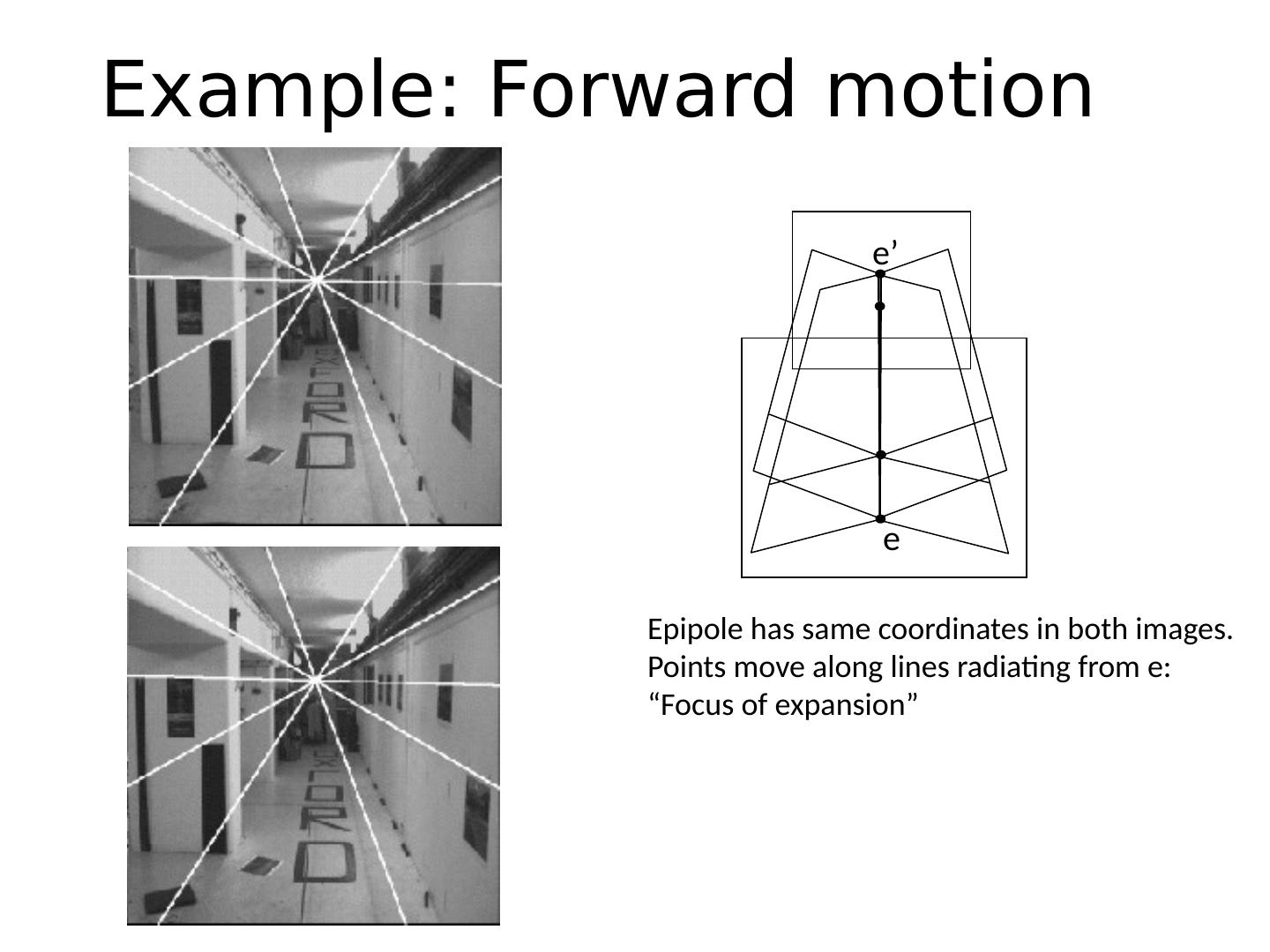 13 .Example: Forward motion What would the epipolar lines look like if the camera moves directly forward?