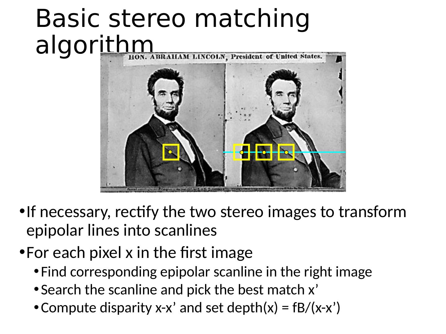 8 .Potential matches for x have to lie on the corresponding line l’ . Potential matches for x’ have to lie on the corresponding line l . Key idea: Epipolar constraint x x’ X x’ X x’ X