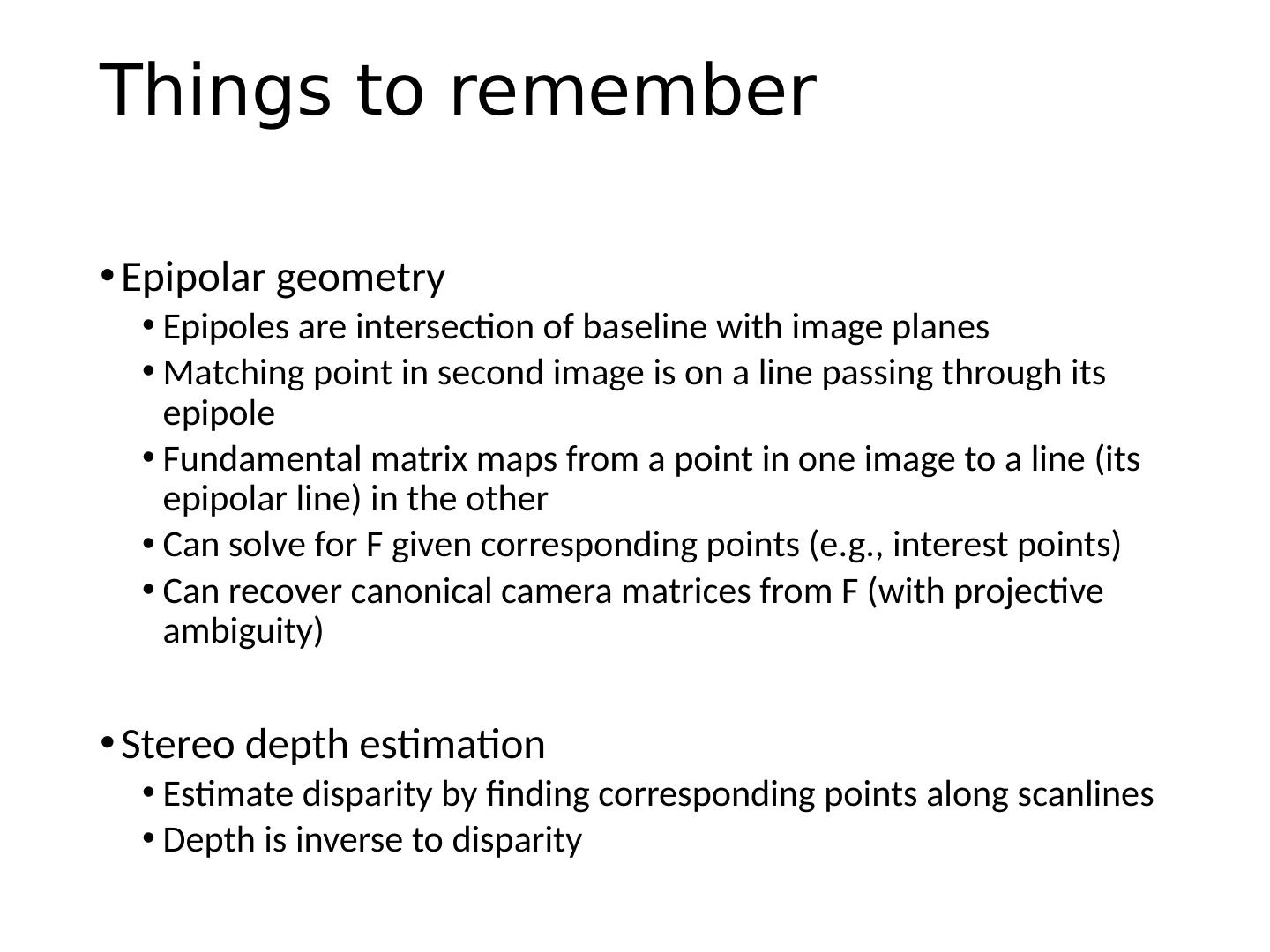 5 .This class: Two-View Geometry Epipolar geometry Relates cameras from two positions Stereo depth estimation Recover depth from two images