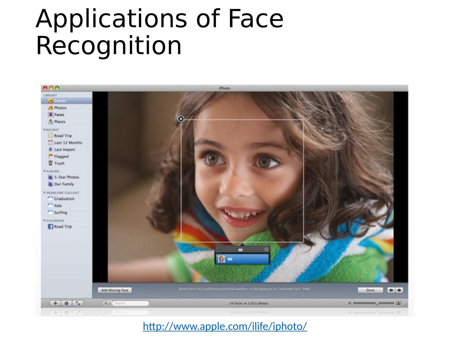 6 .Applications of Face Recognition Album organization: iPhoto 2009 http://www.apple.com/ilife/iphoto/