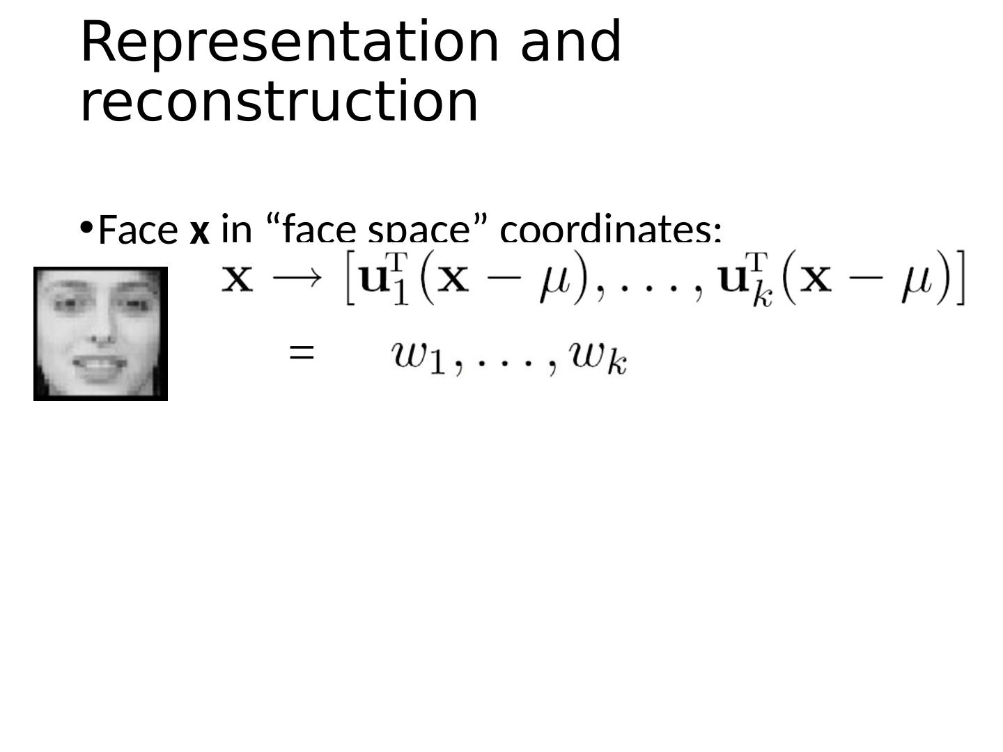 26 .Representation and reconstruction Face x in “face space” coordinates: =