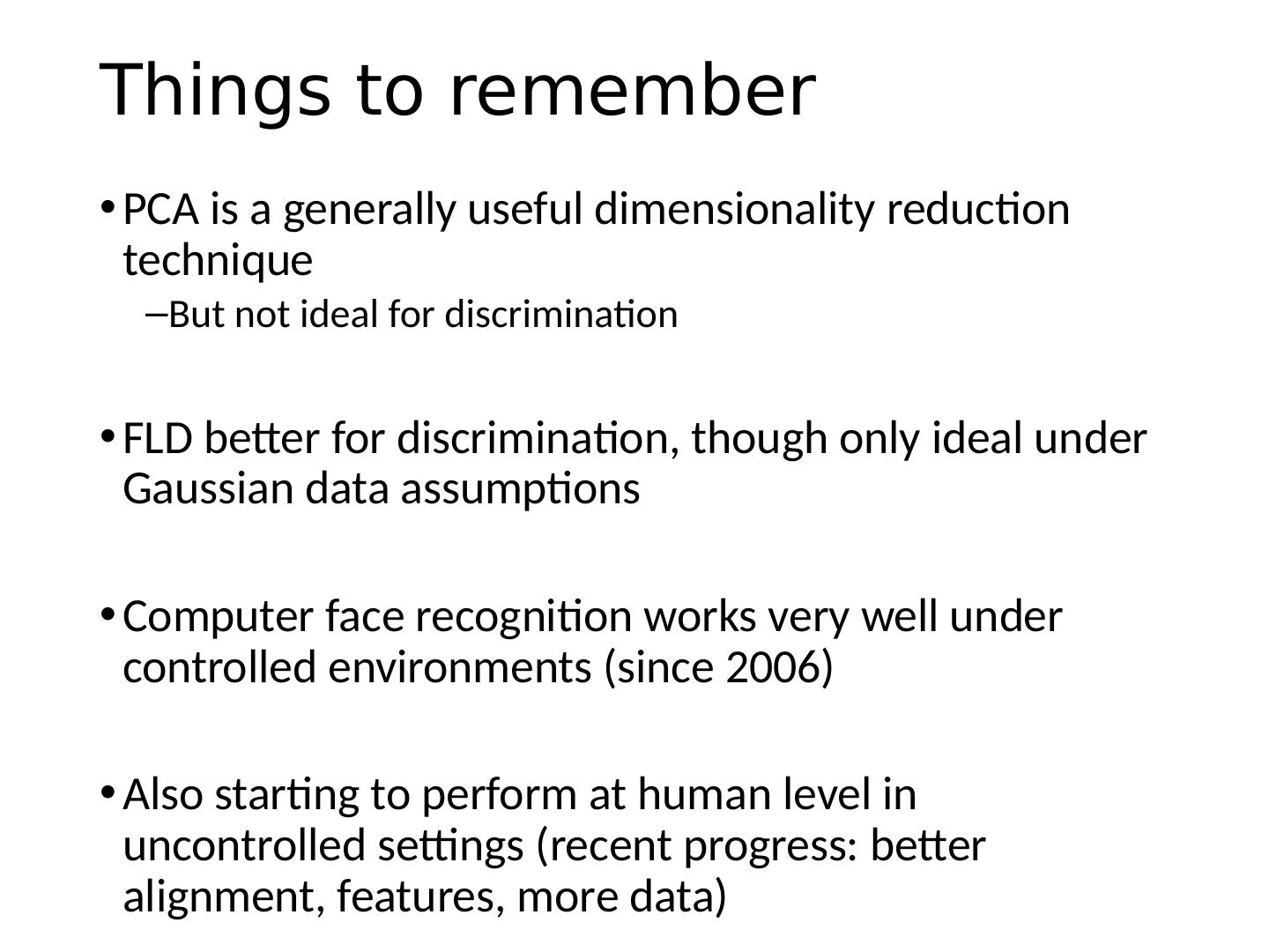 21 .Implementation issue Covariance matrix is huge (M 2 for M pixels) But typically # examples << M Simple trick X is Mx N matrix of normalized training data Solve for eigenvectors u of X T X instead of XX T Then Xu is eigenvector of covariance XX T Need to normalize each vector of Xu into unit length