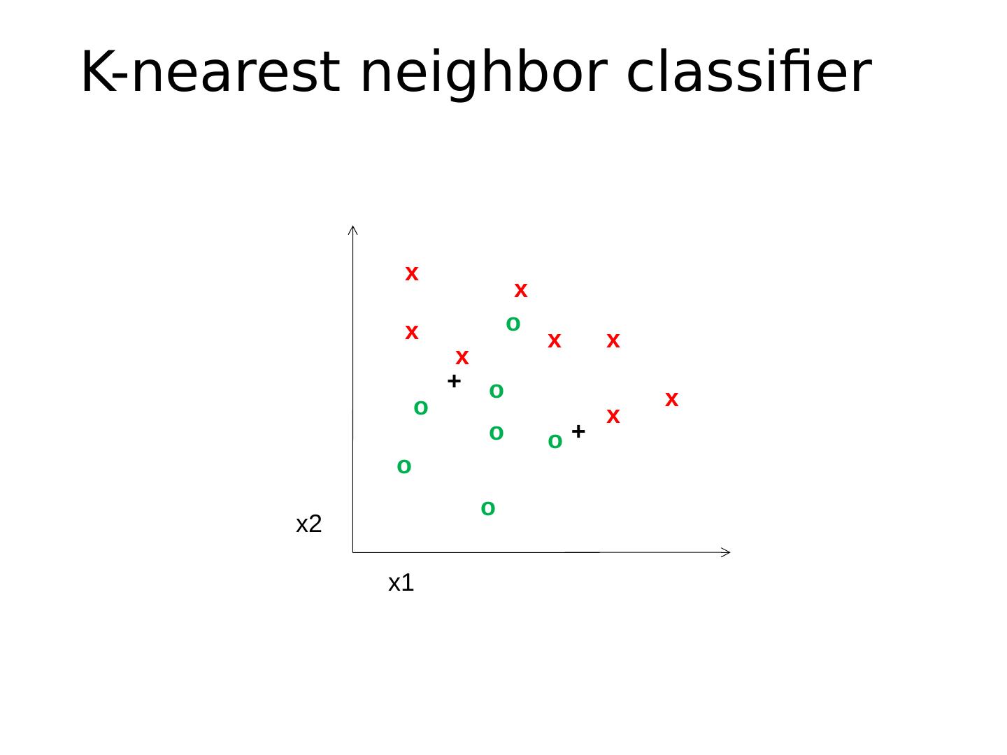 9 .K-nearest neighbor classifier x x x x x x x x o o o o o o o x2 x1 + +