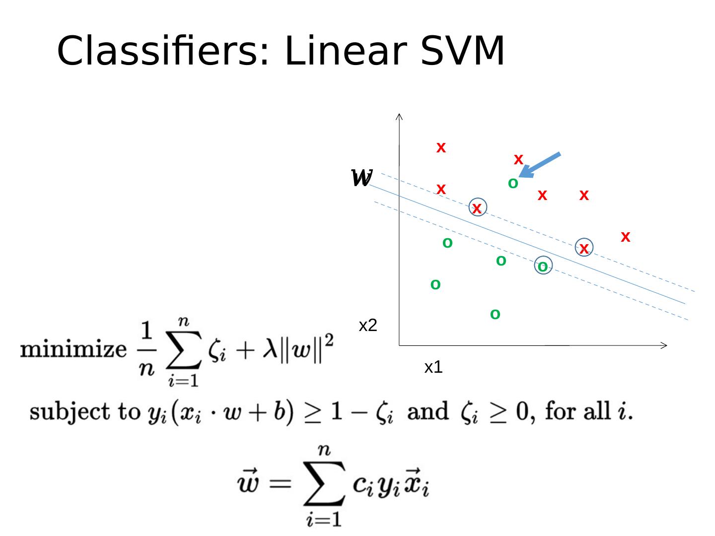 17 .Classifiers: Linear SVM x x x x x x x x o o o o o o x2 x1