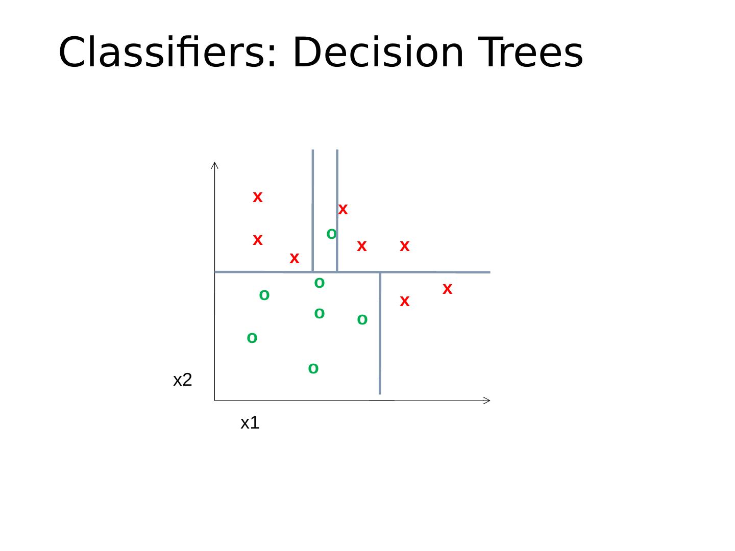 20 .Classifiers: Decision Trees x x x x x x x x o o o o o o o x2 x1