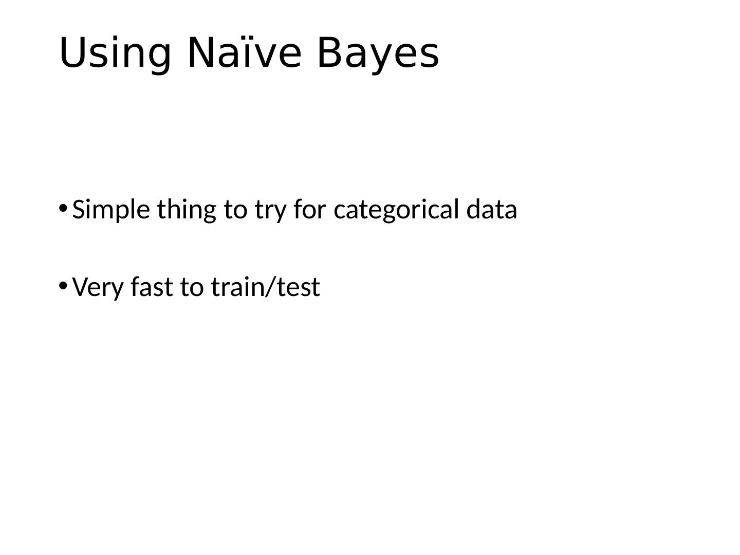 26 .Using Naïve Bayes Simple thing to try for categorical data Very fast to train/test