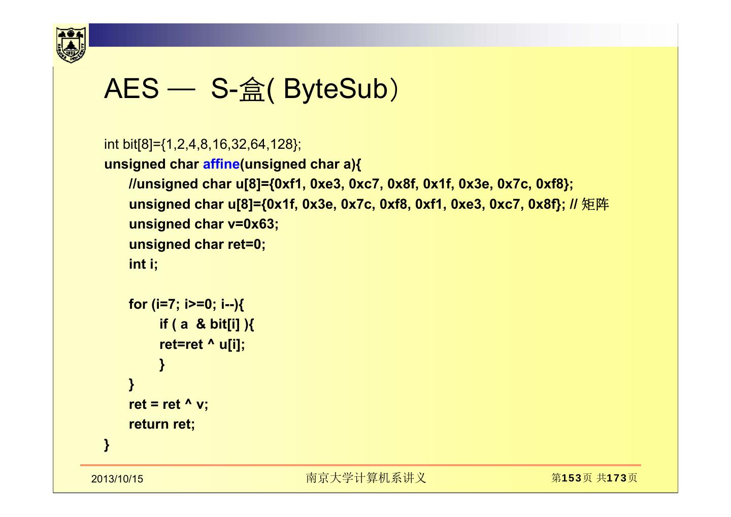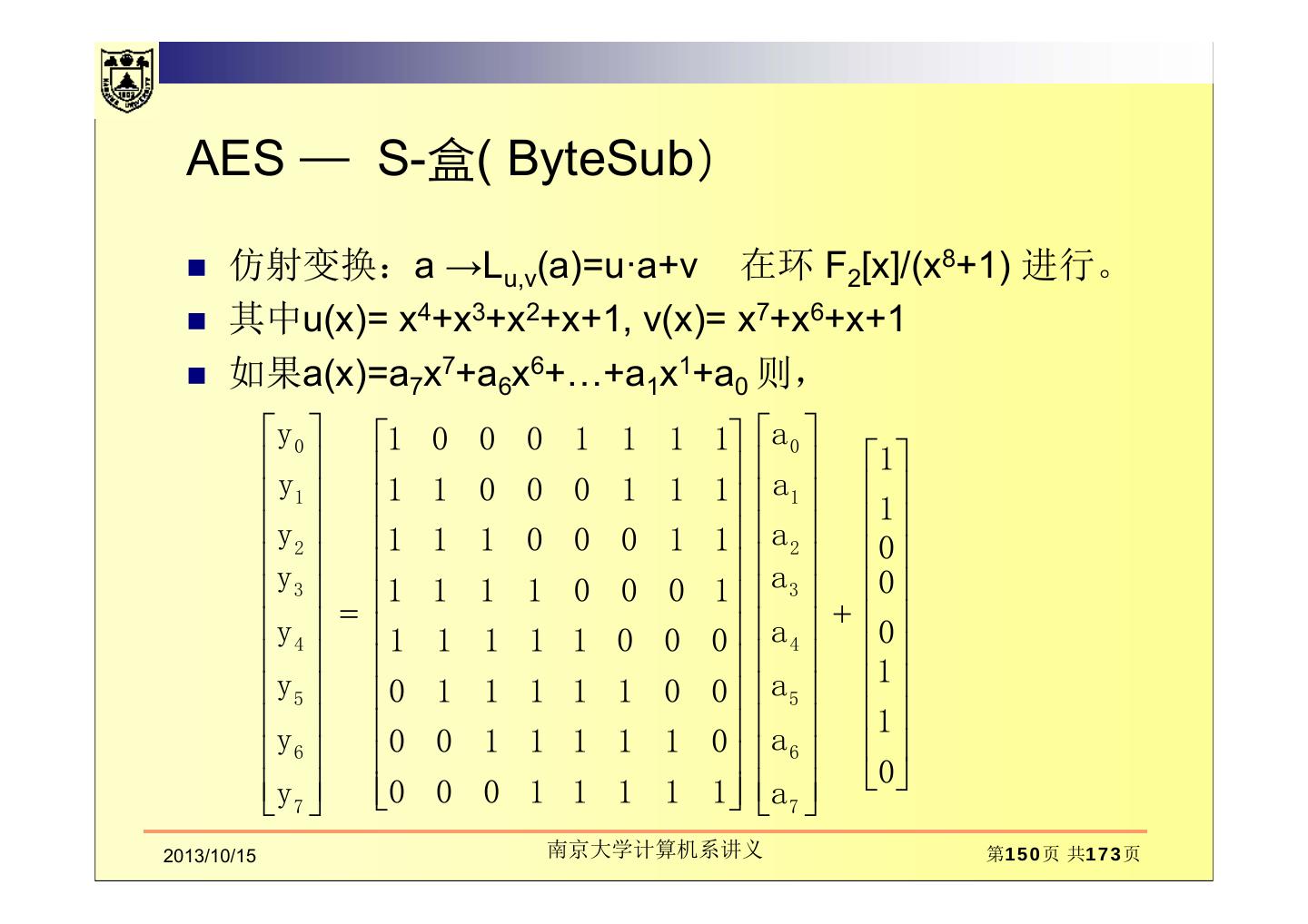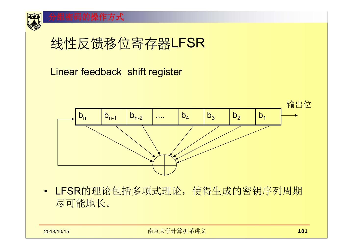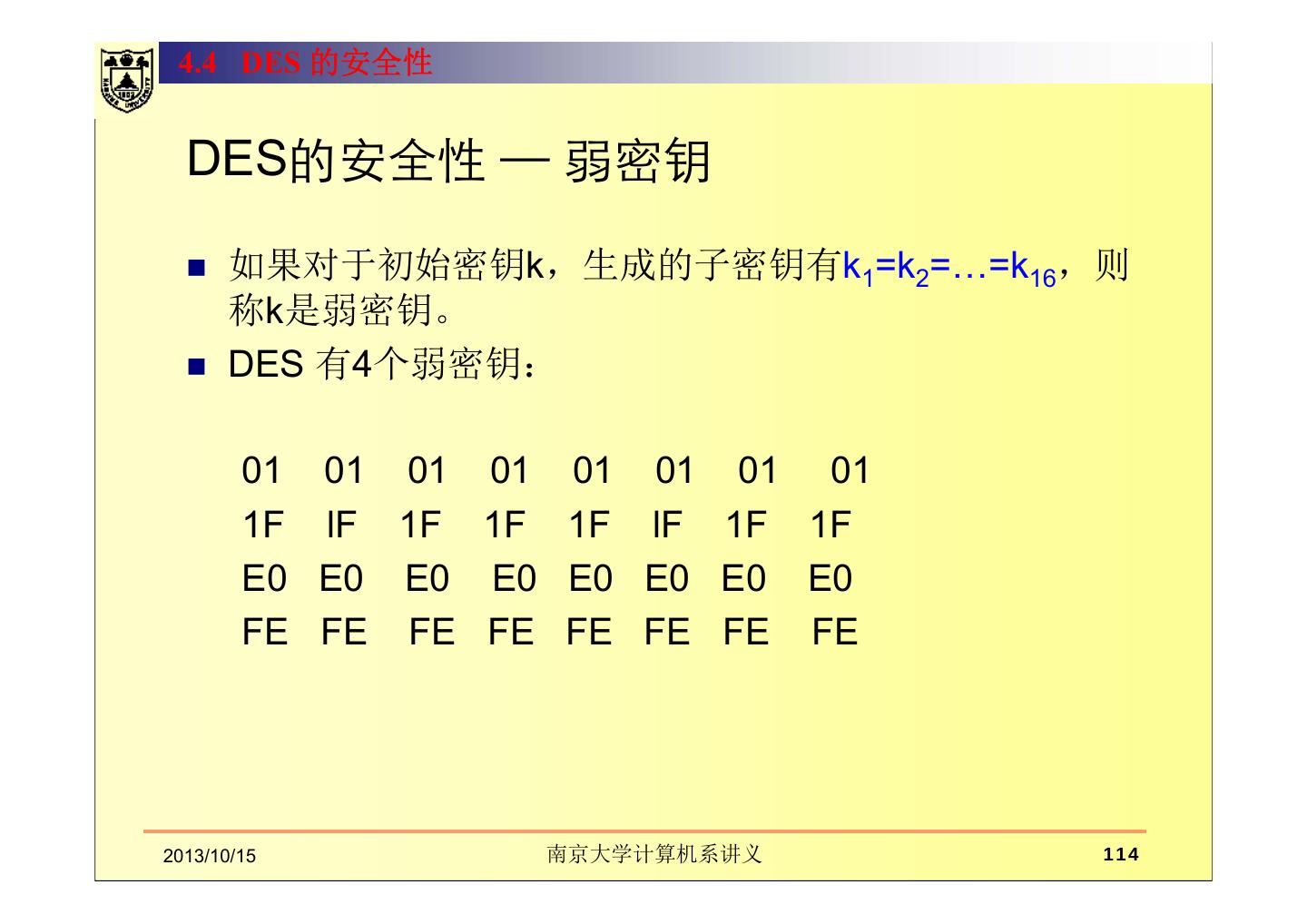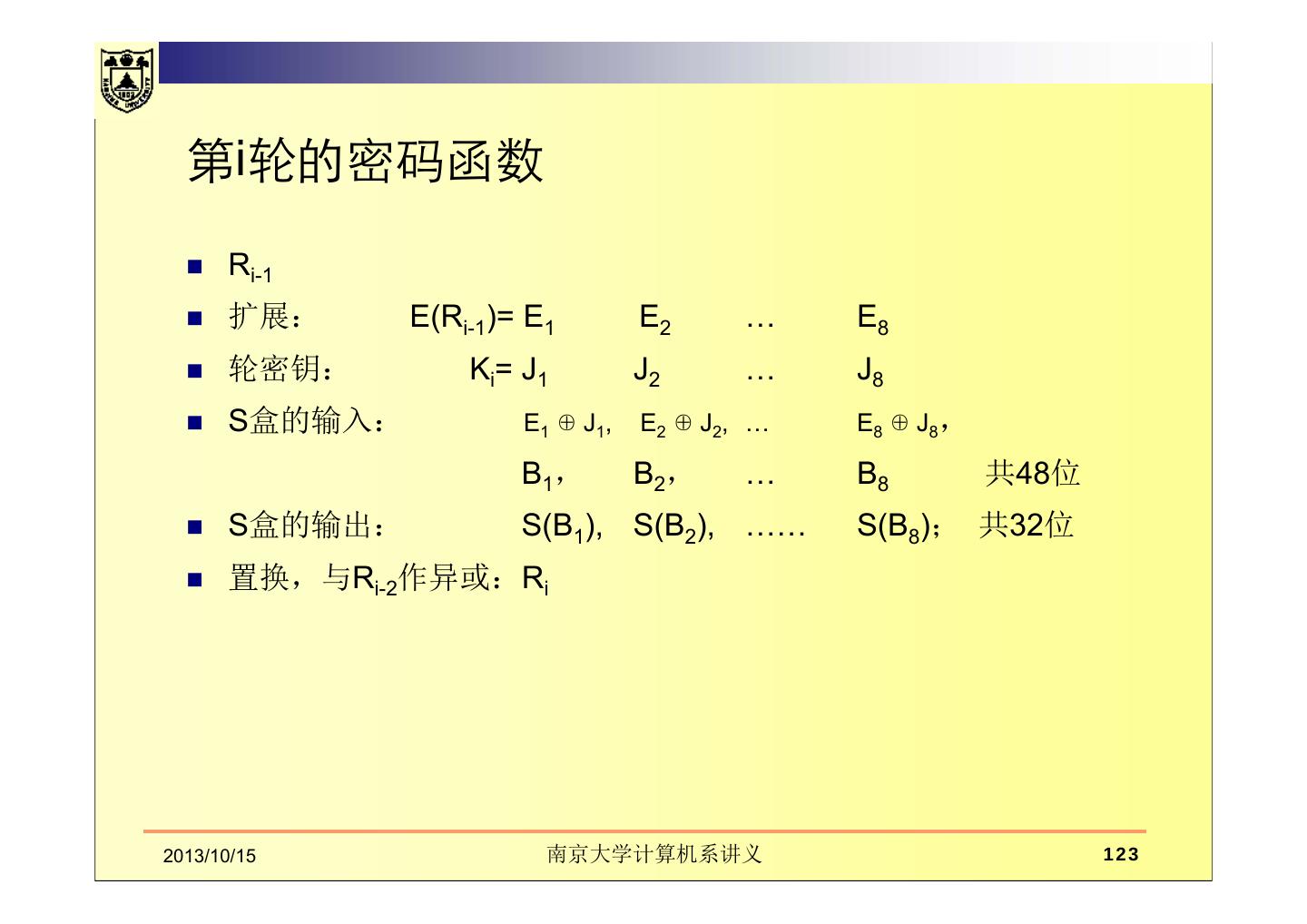 9 . 参考文献 1. Wenbo Mao(毛文波),现代密码学理论与实践,电子工业出版 社,2004年7月。 2. 吴文玲,冯登国,张文涛,分组密码的设计与分析,清华大学 出版社,2009年10月。 3. 冯登国,密码分析学,清华大学出版社,2000年8月。 4. Bruce Chneier, 应用密码学,机械工业出版社,2000年1月。 2013/10/15 南京大学计算机系讲义 9