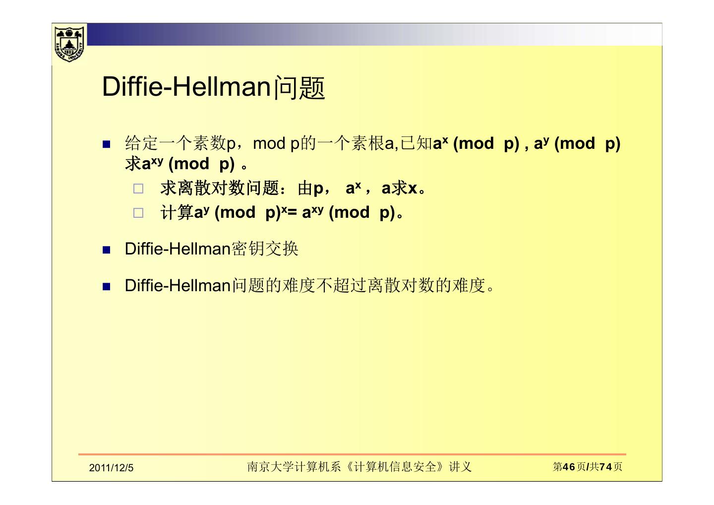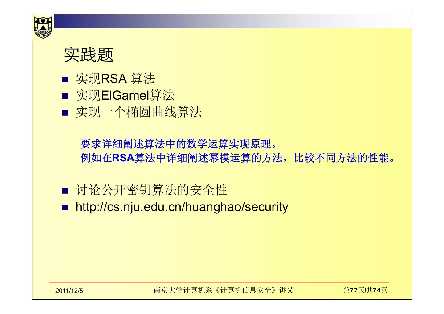 1 .第2章 公开密钥密码学 南京大学计算机系黄皓教授 2011年10月10日