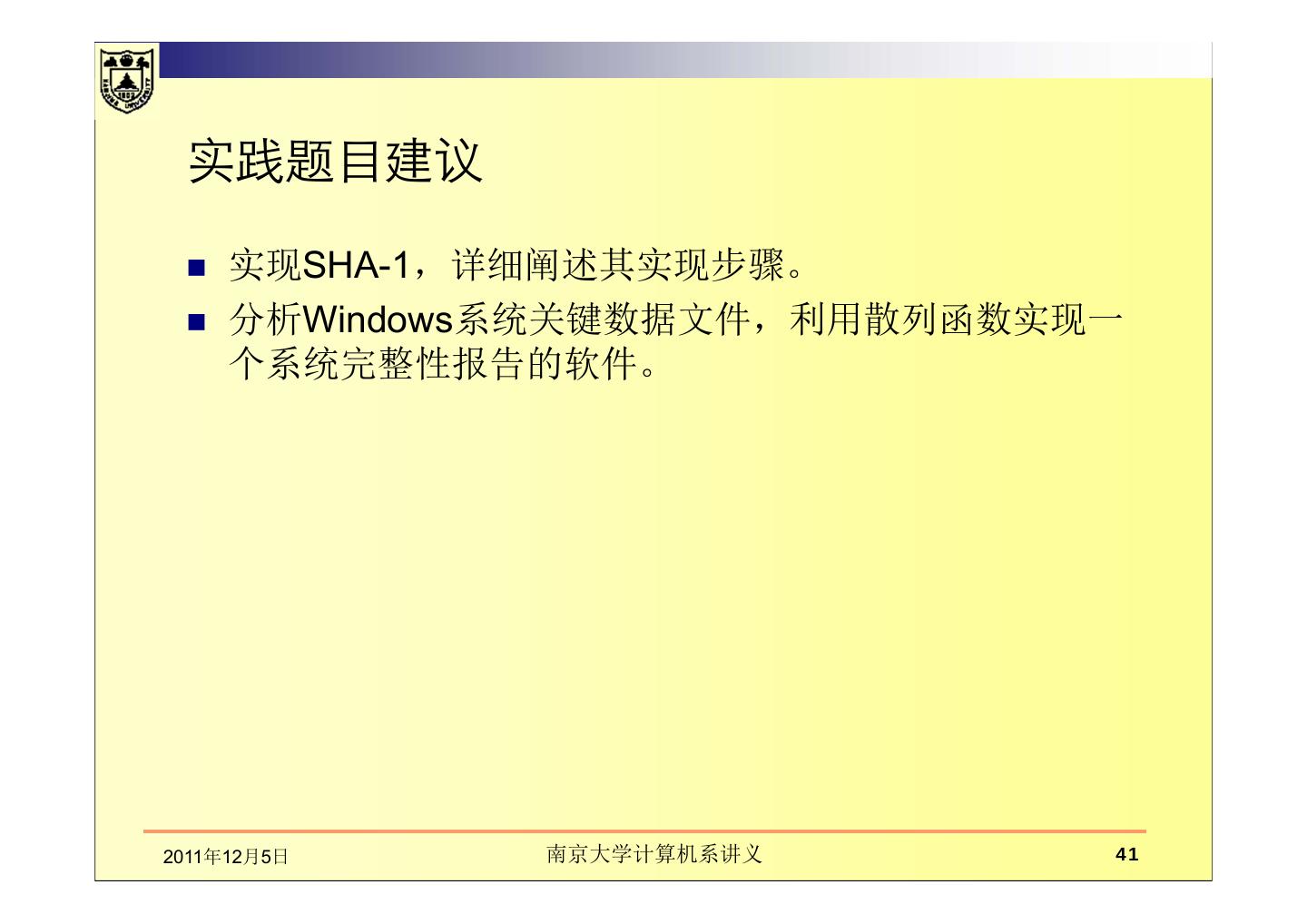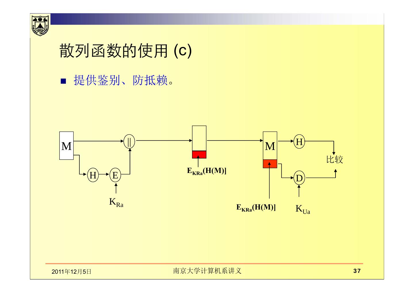 1 .第3章 数据完整性与散列函数 南京大学计算机系黄皓教授 2011年10月19日星期三