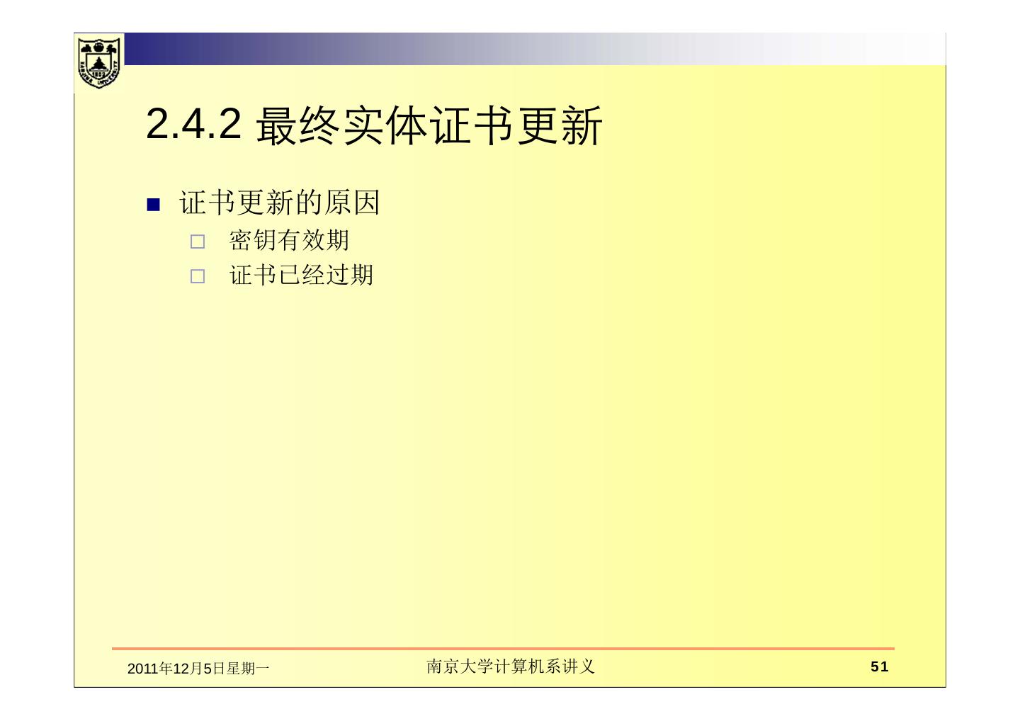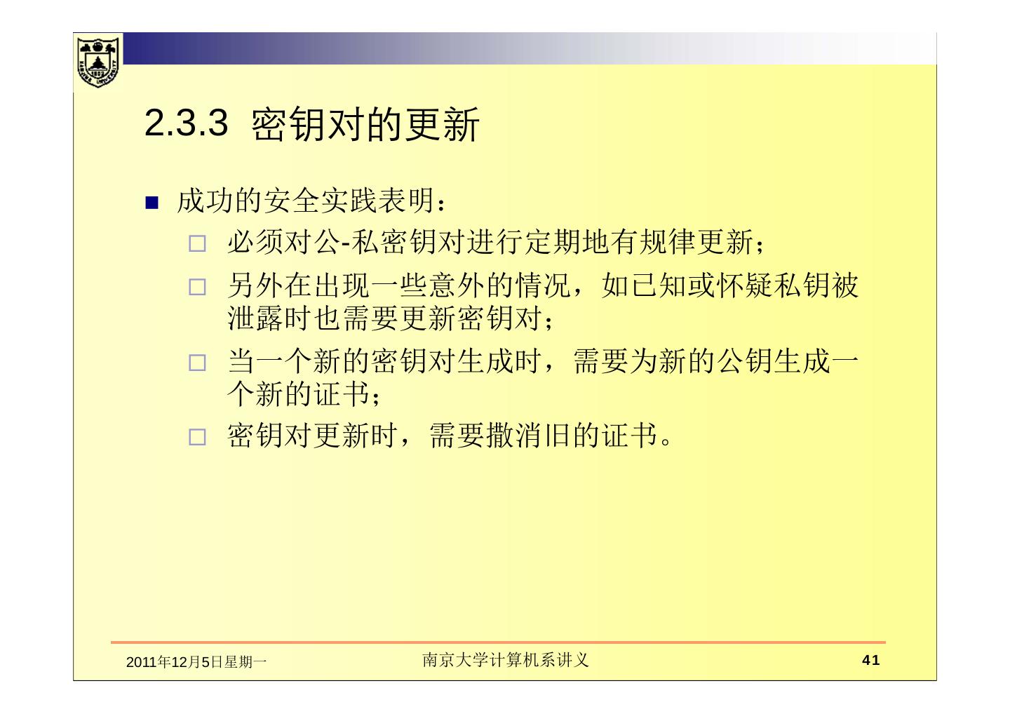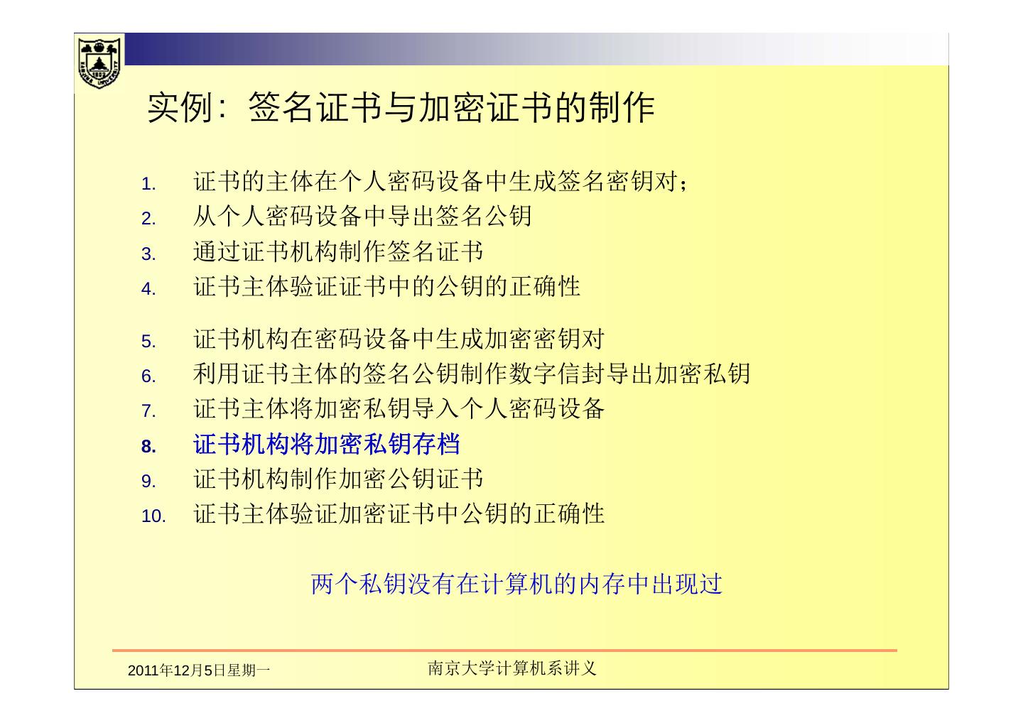 1 .第4章 公开密钥基础设施 南京大学计算机系黄皓教授 2011年10月24日
