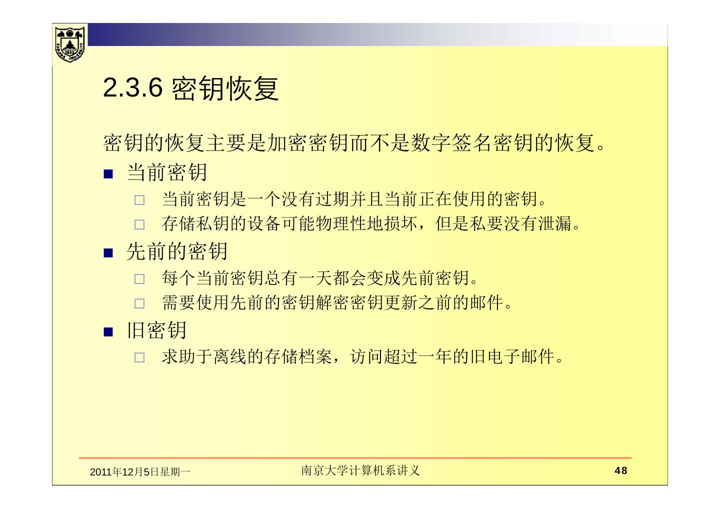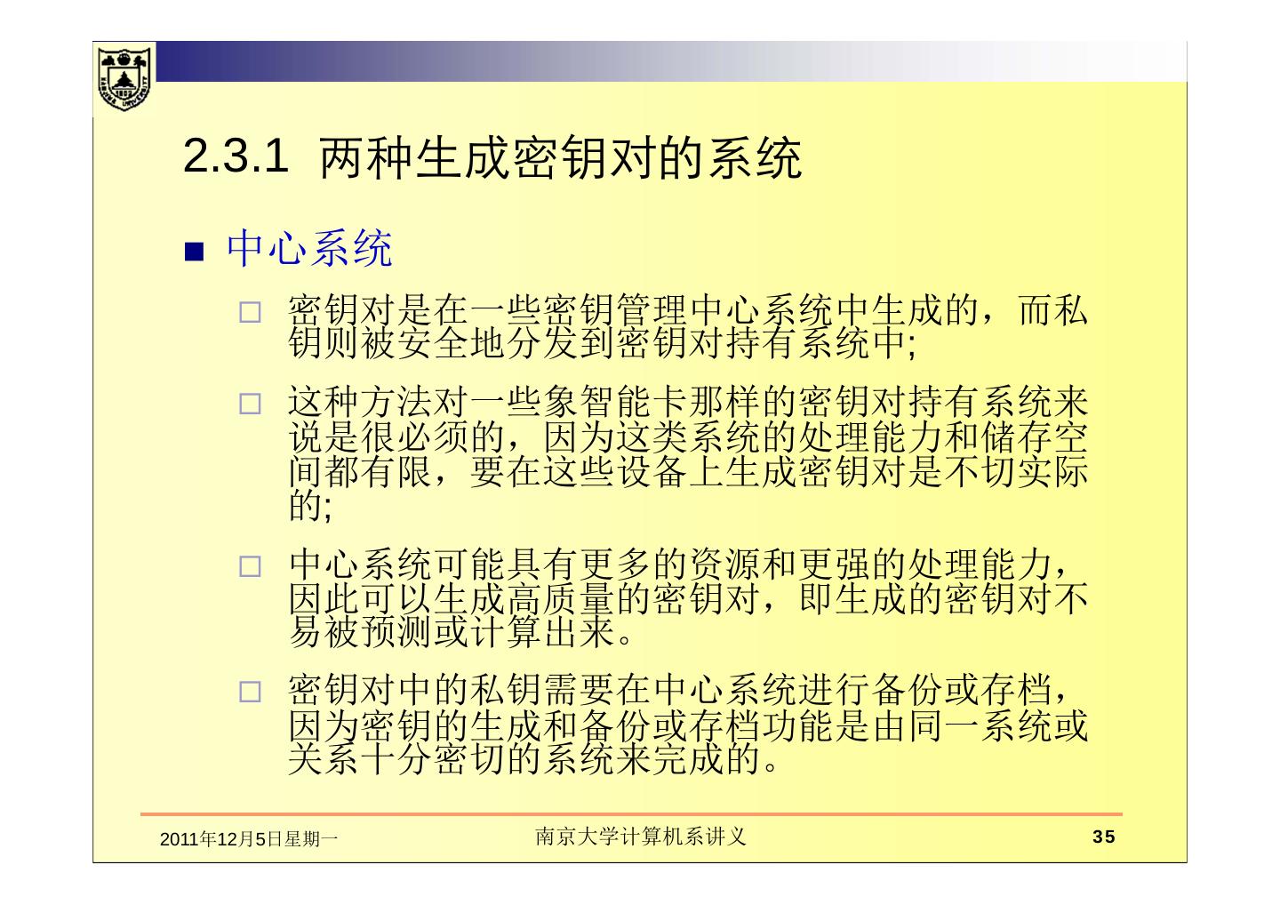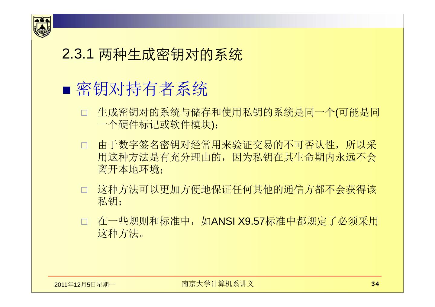 1 .第4章 公开密钥基础设施 南京大学计算机系黄皓教授 2011年10月24日