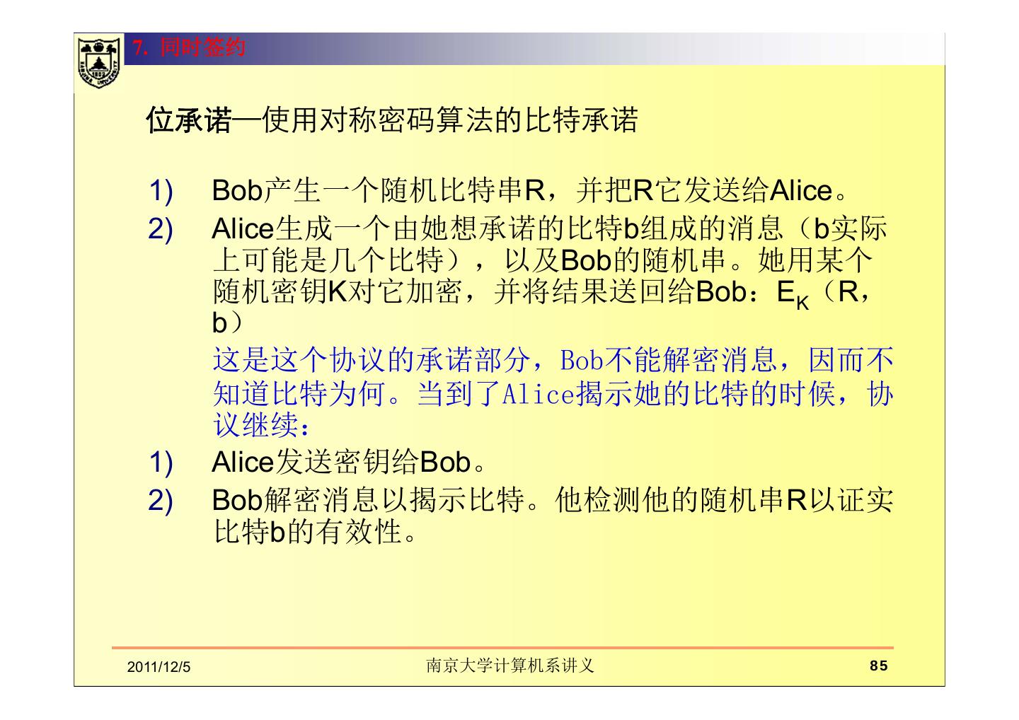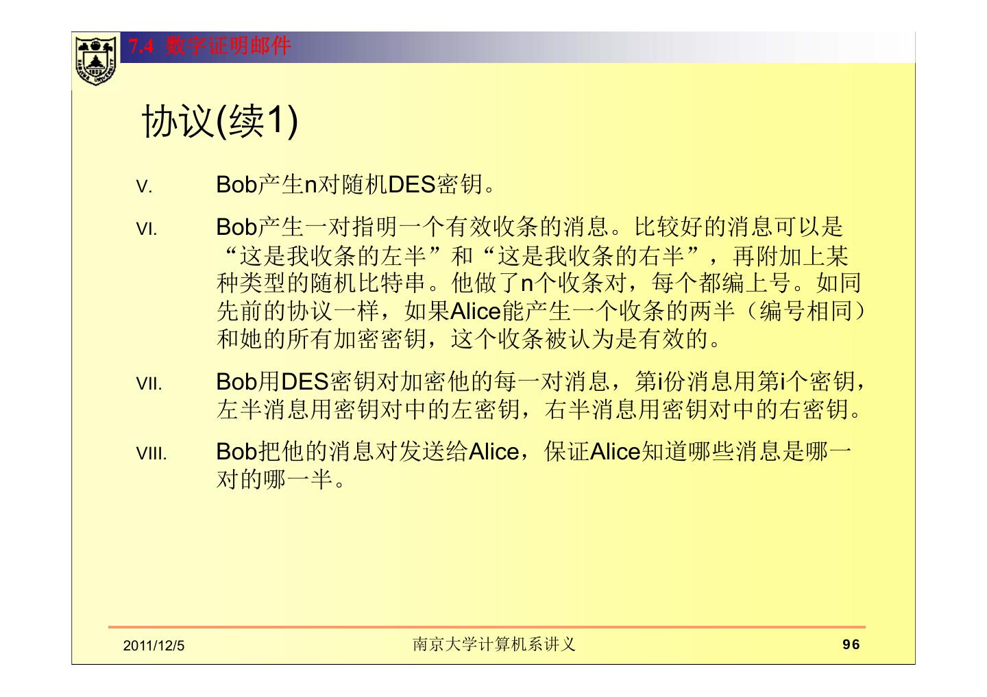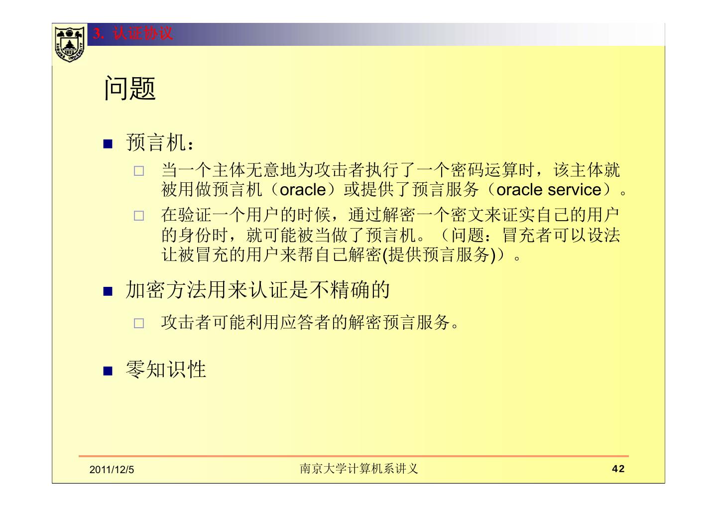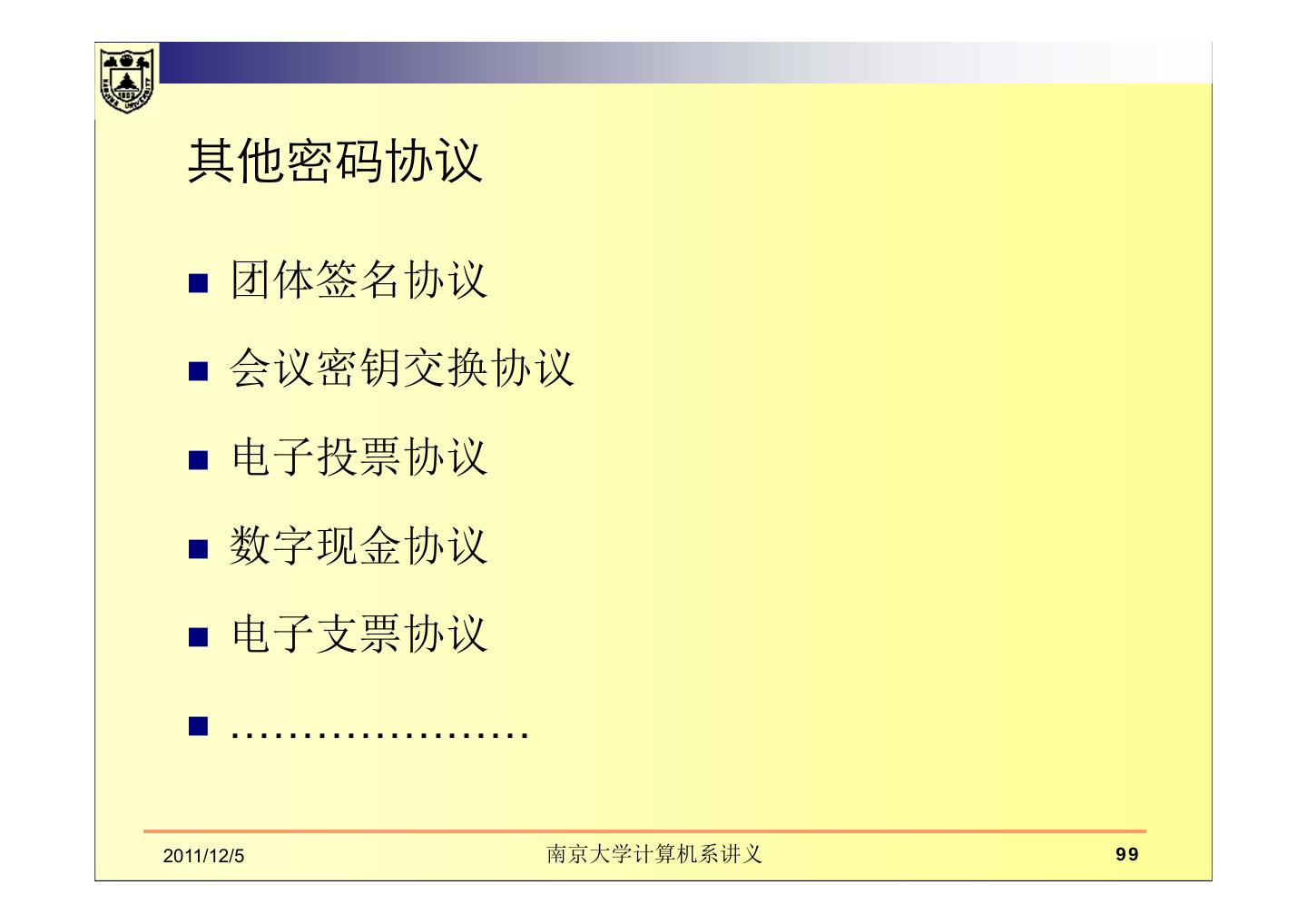 1 .第6章 密码协议 南京大学计算机系黄皓教授 2011年11月7日