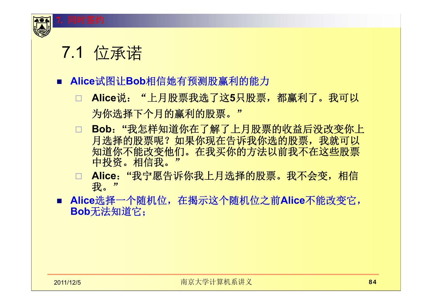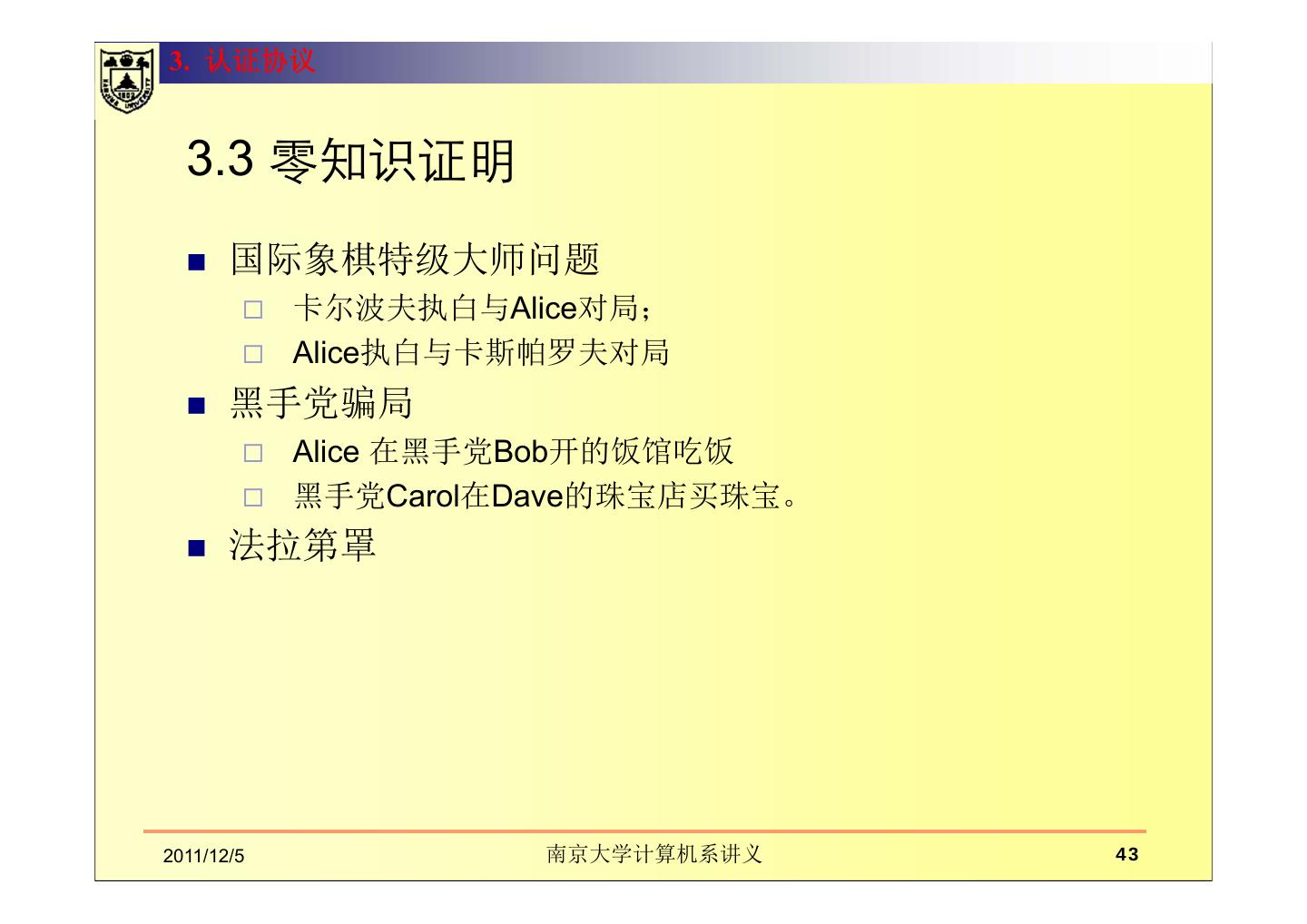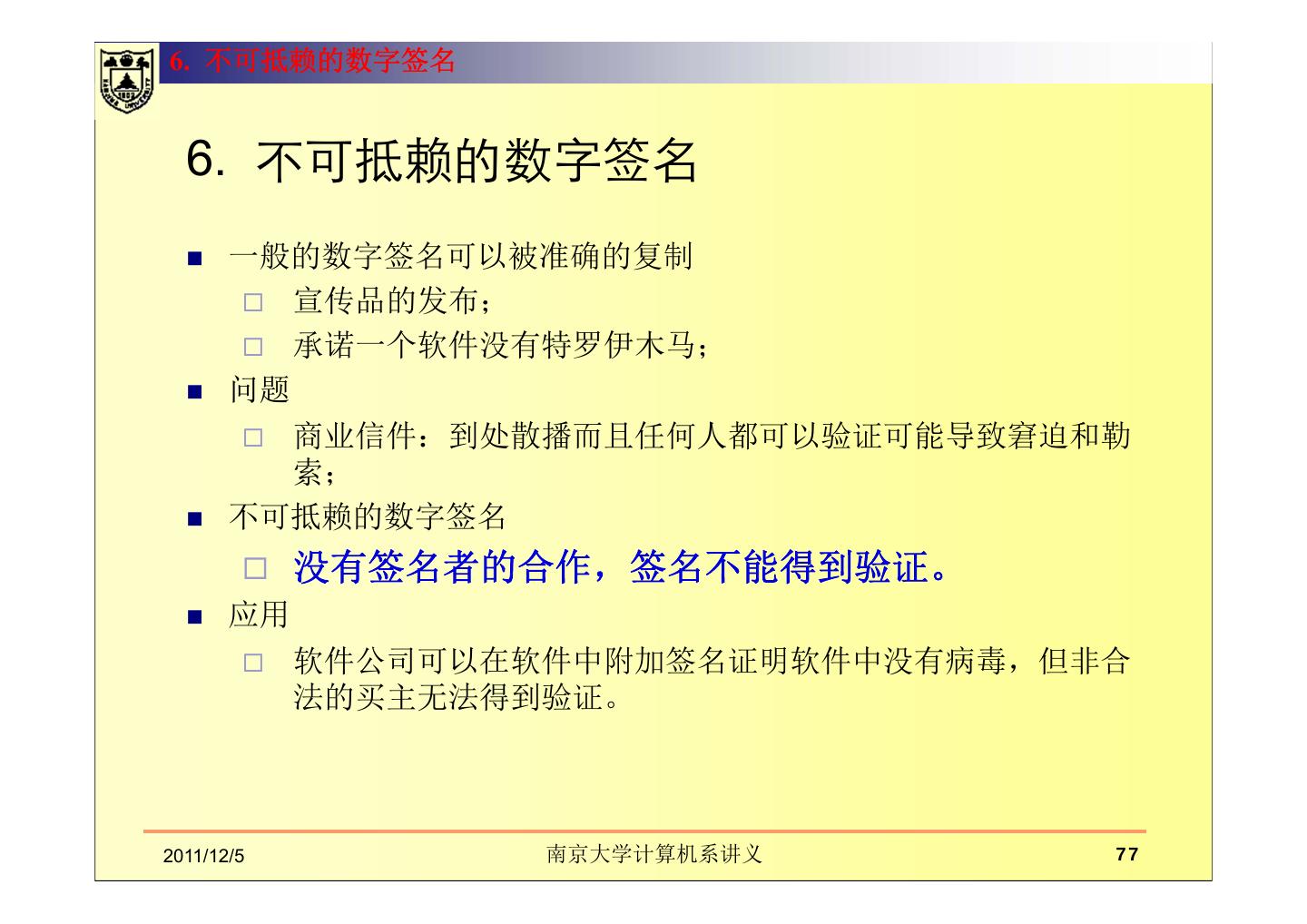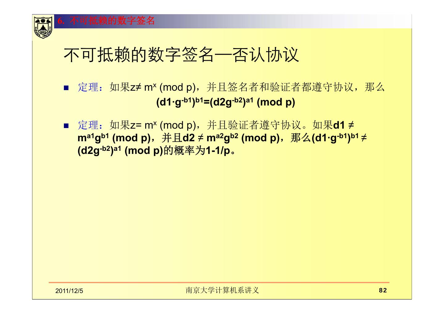 1 .第6章 密码协议 南京大学计算机系黄皓教授 2011年11月7日