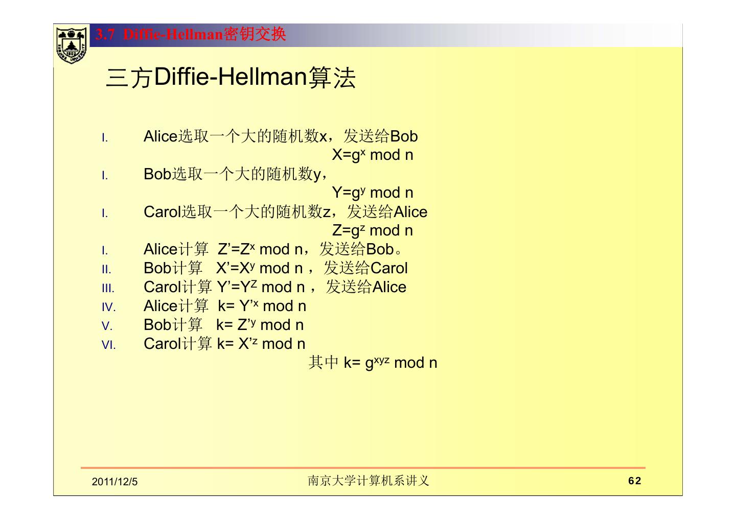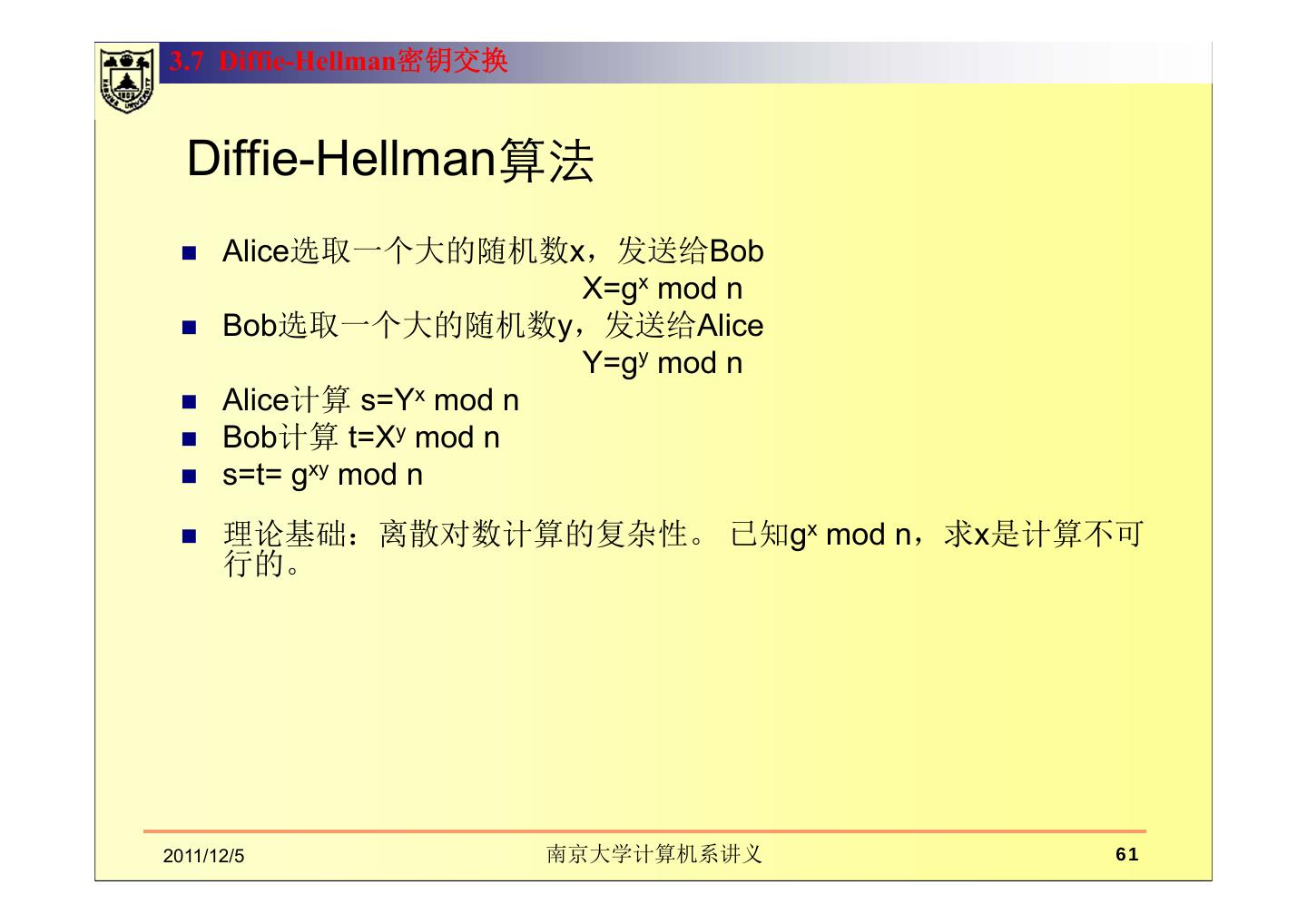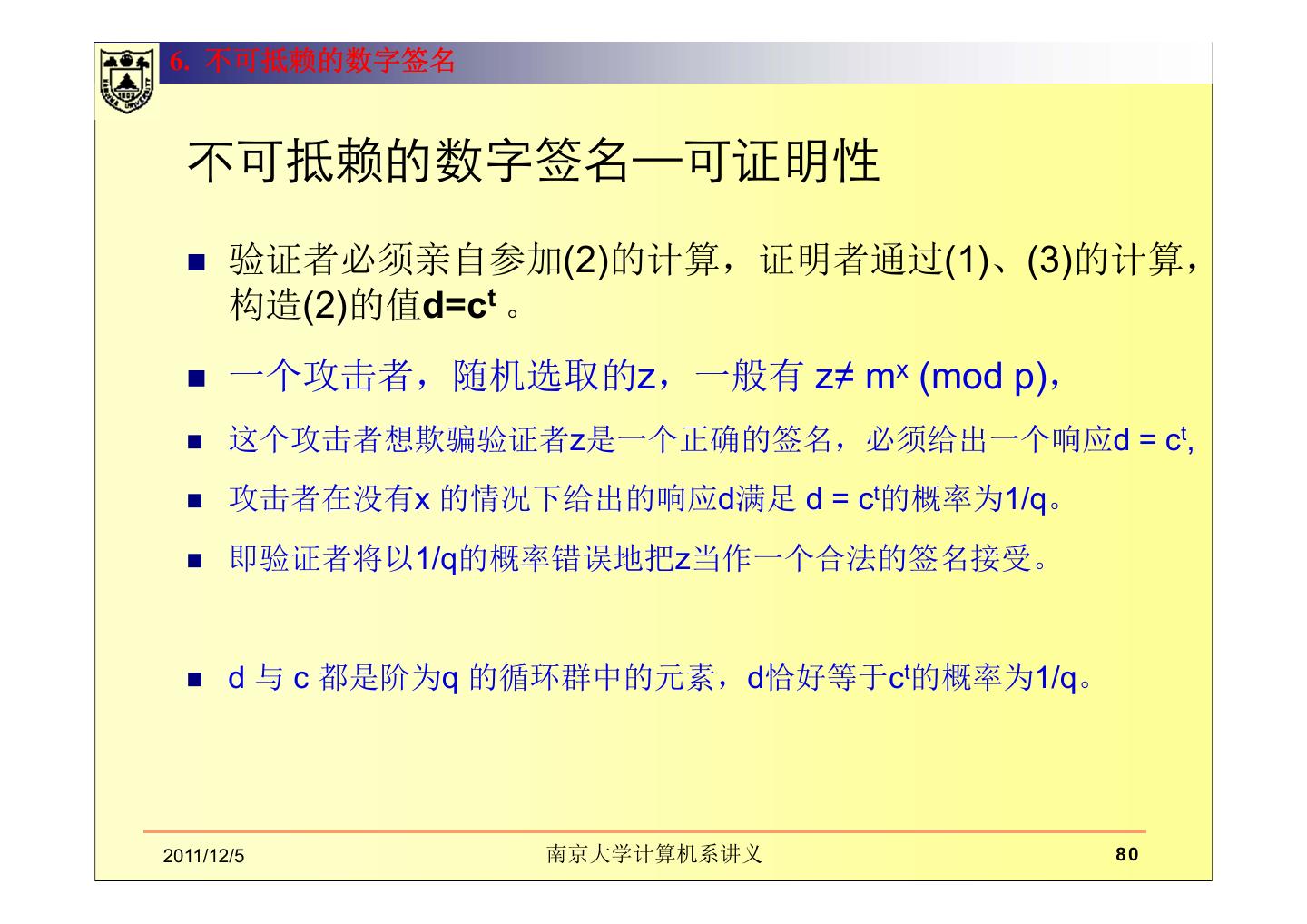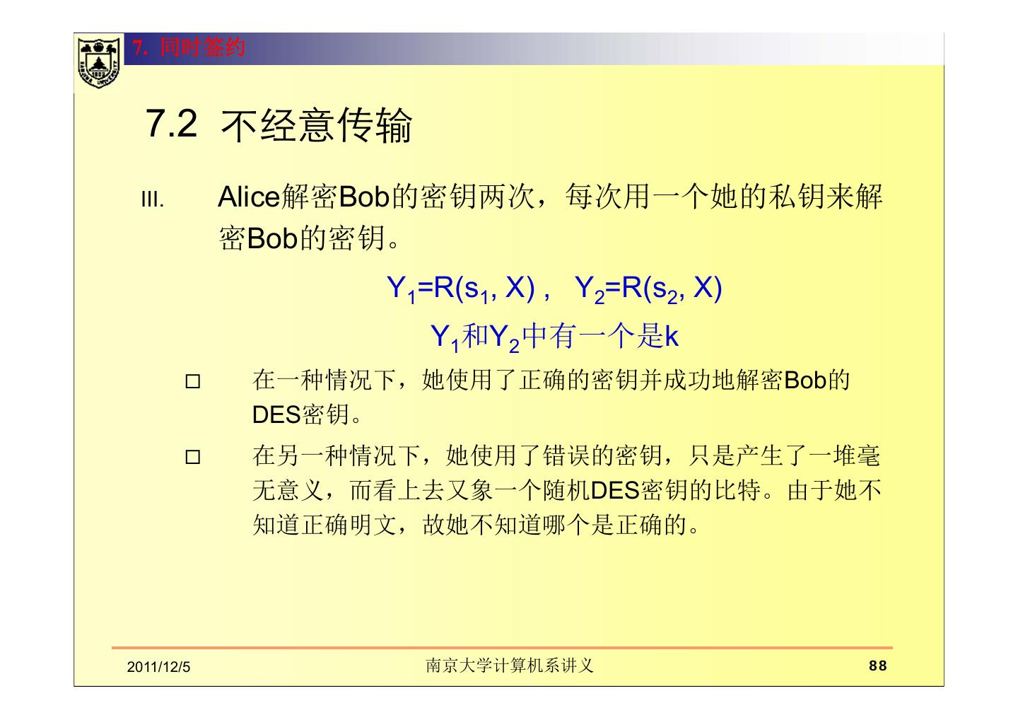 1 .第6章 密码协议 南京大学计算机系黄皓教授 2011年11月7日