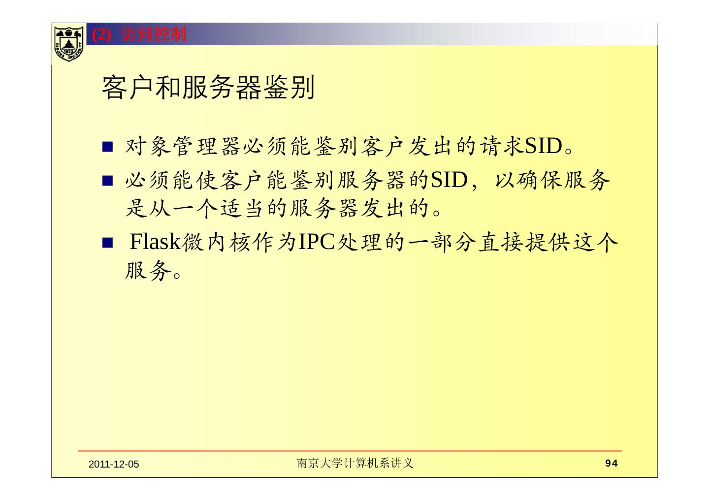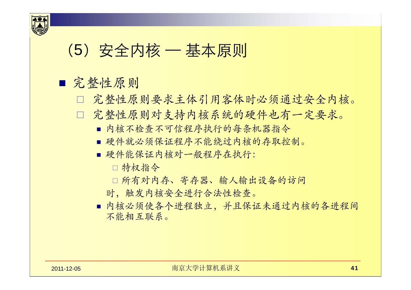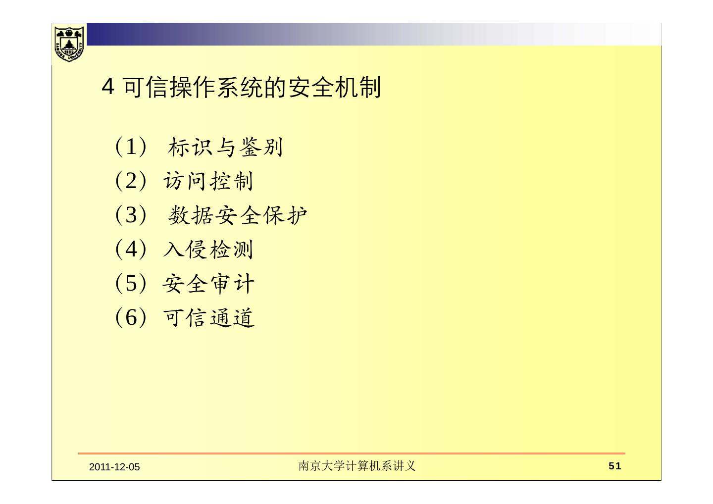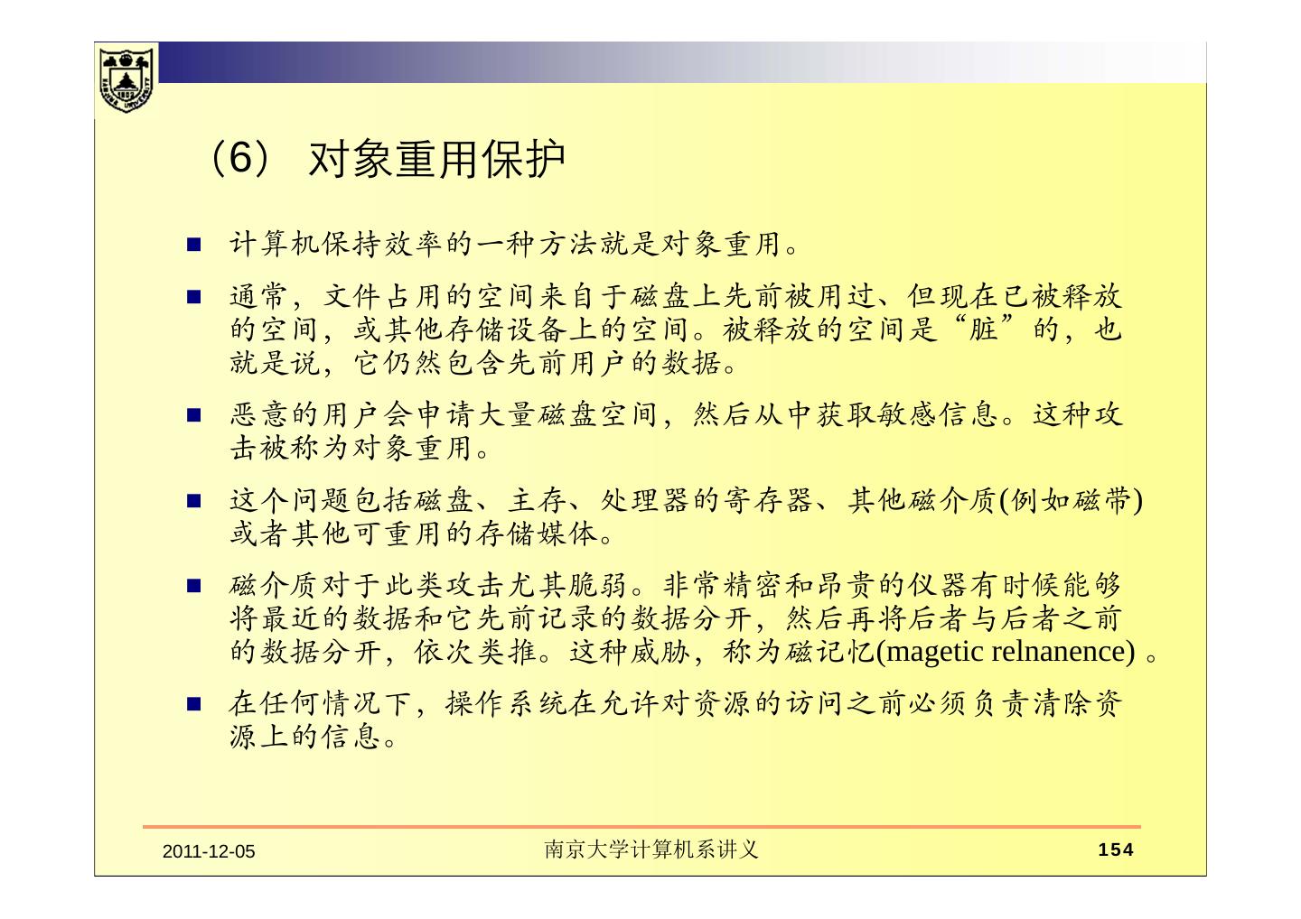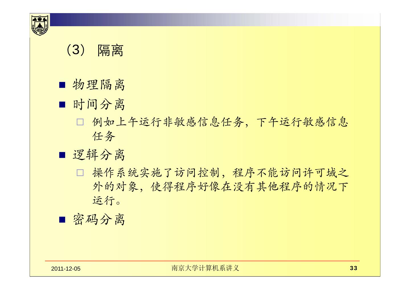 1 .第8章 操作系统安全 南京大学计算机系 黄皓教授 2011年12月5日