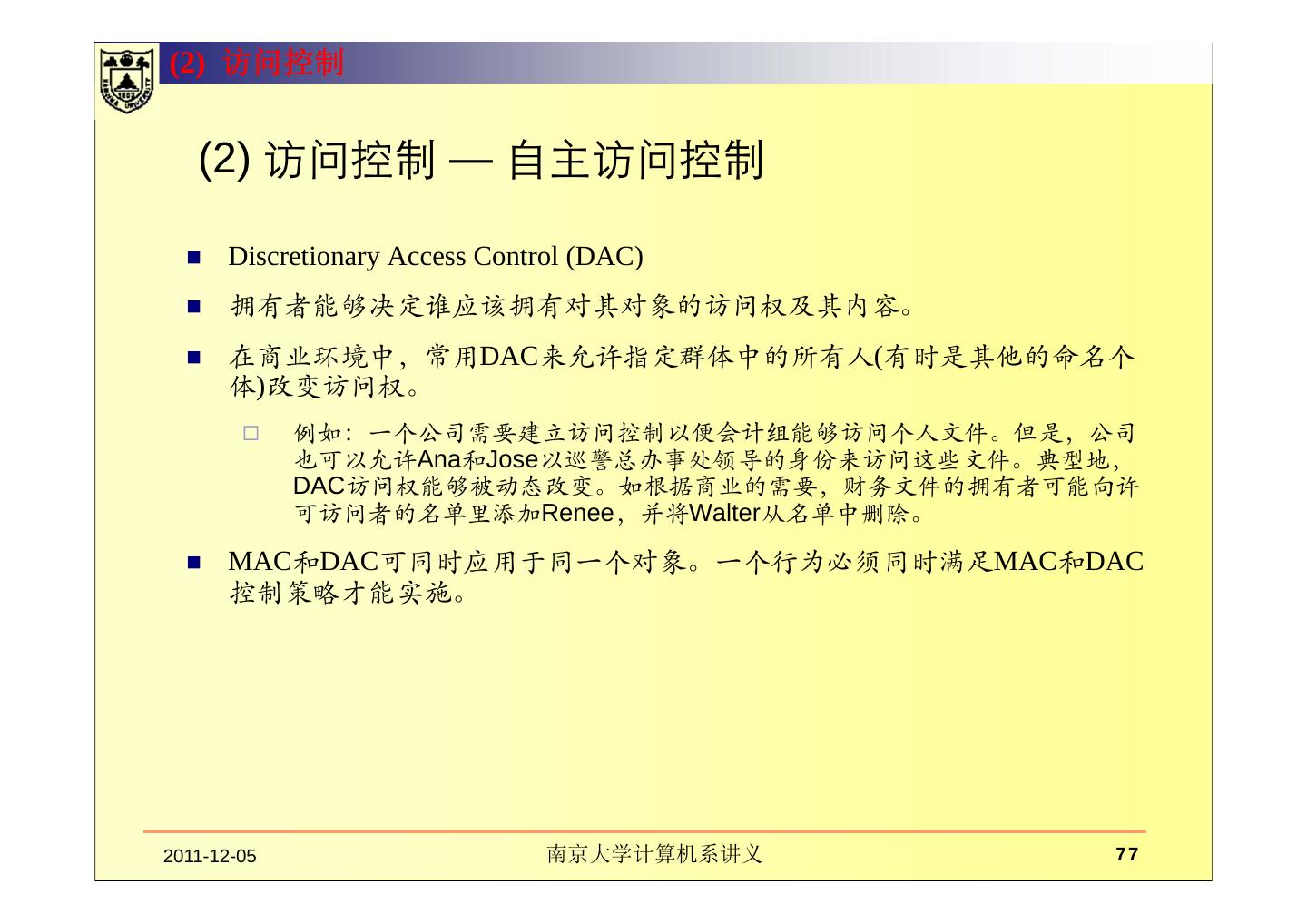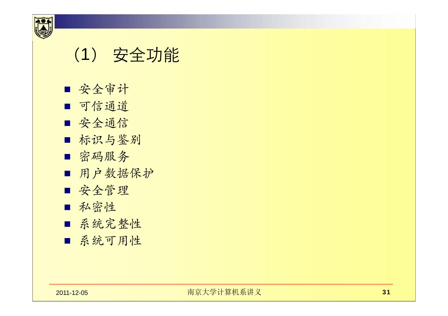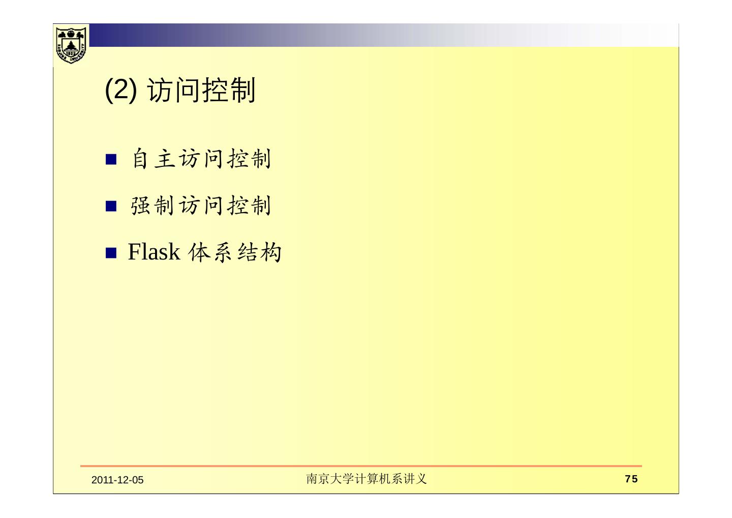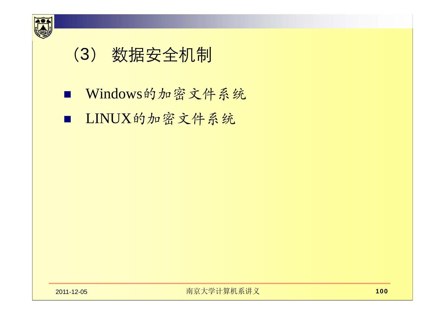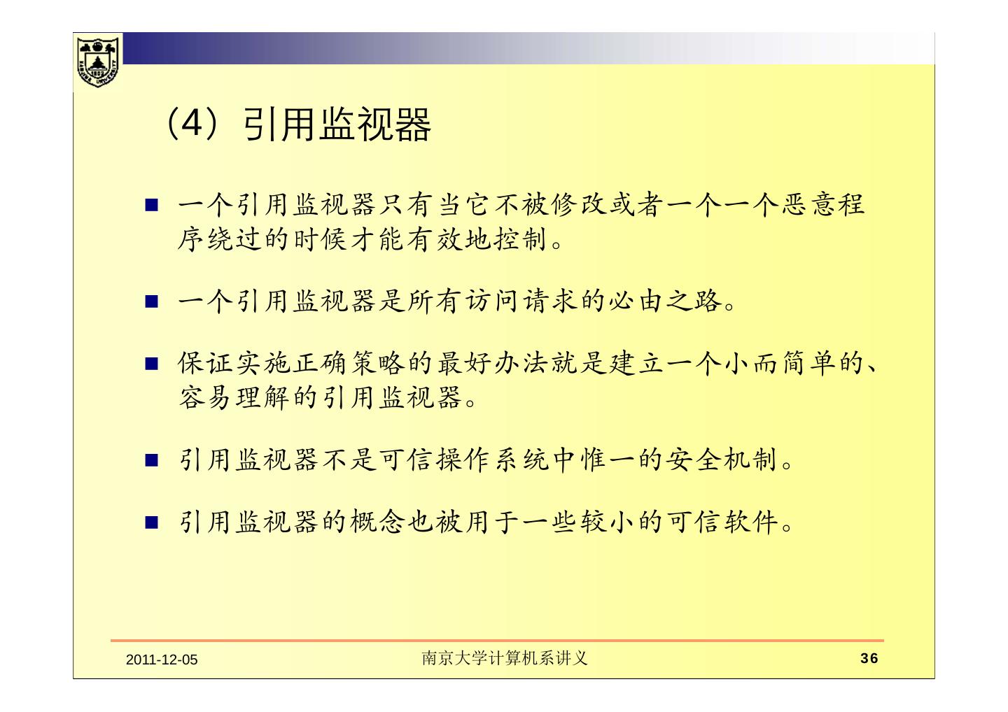 1 .第8章 操作系统安全 南京大学计算机系 黄皓教授 2011年12月5日