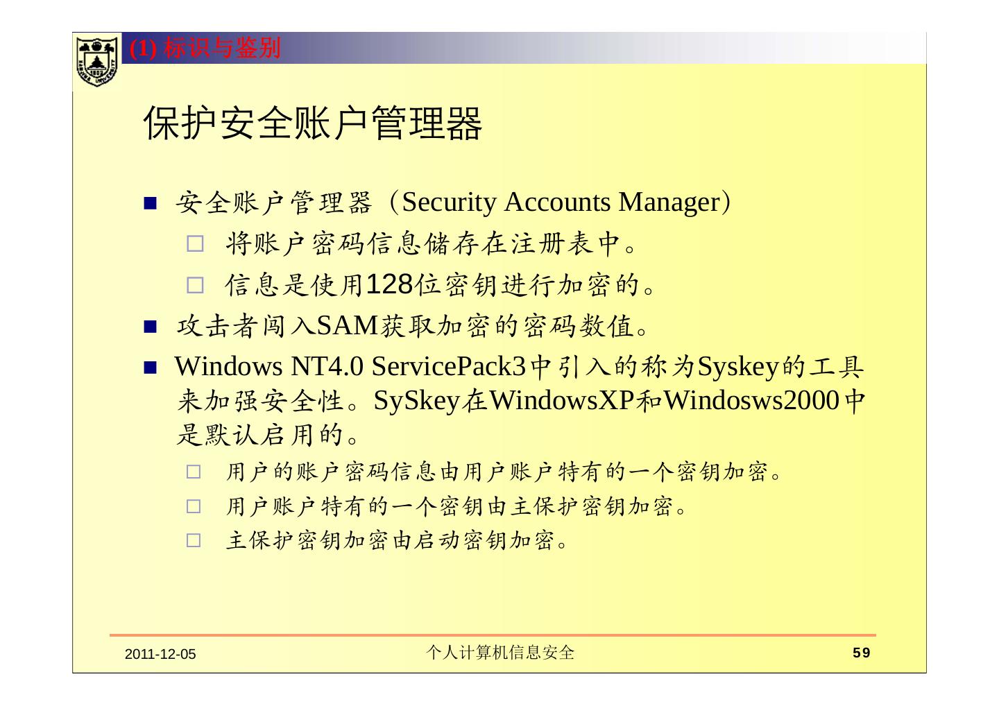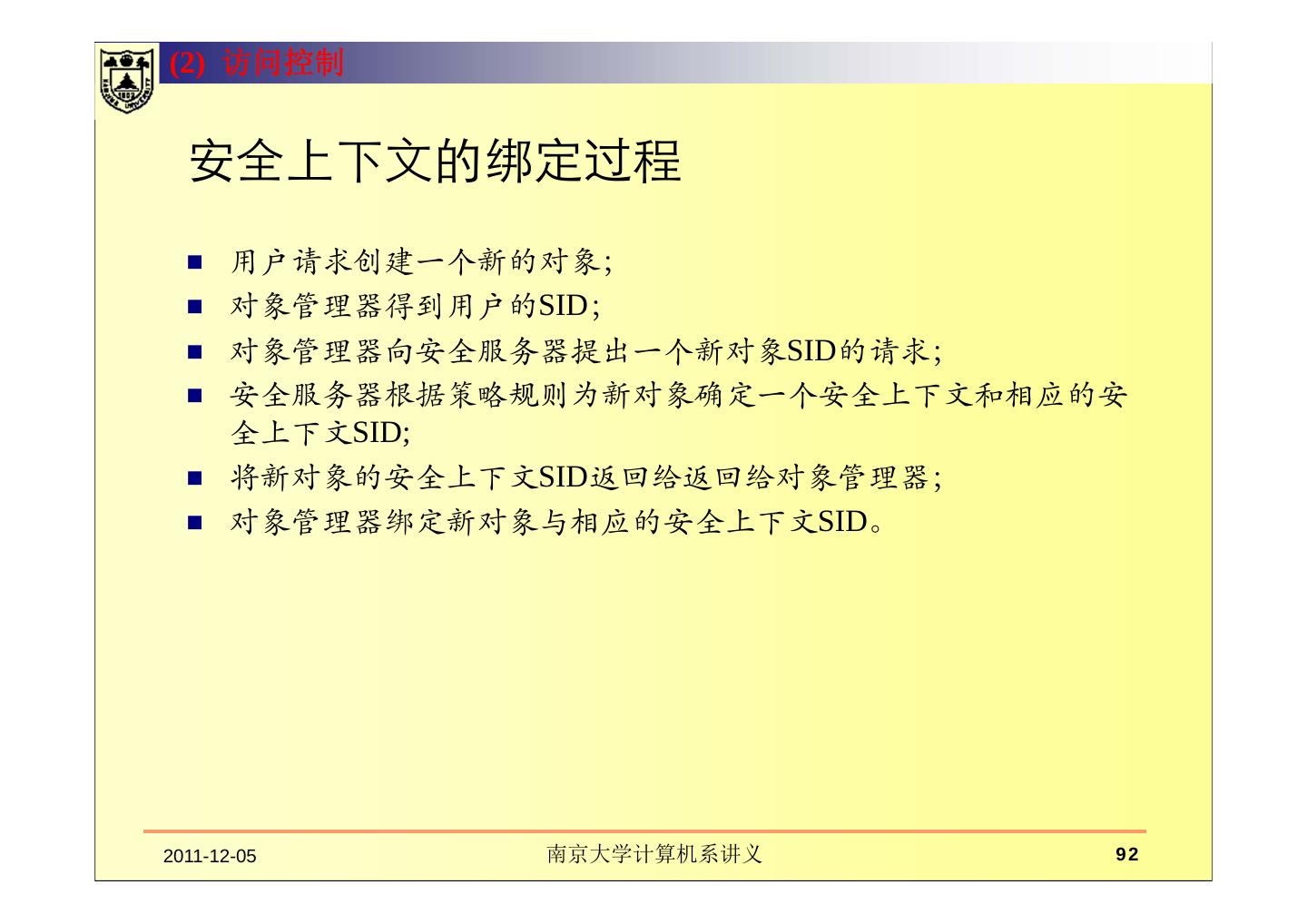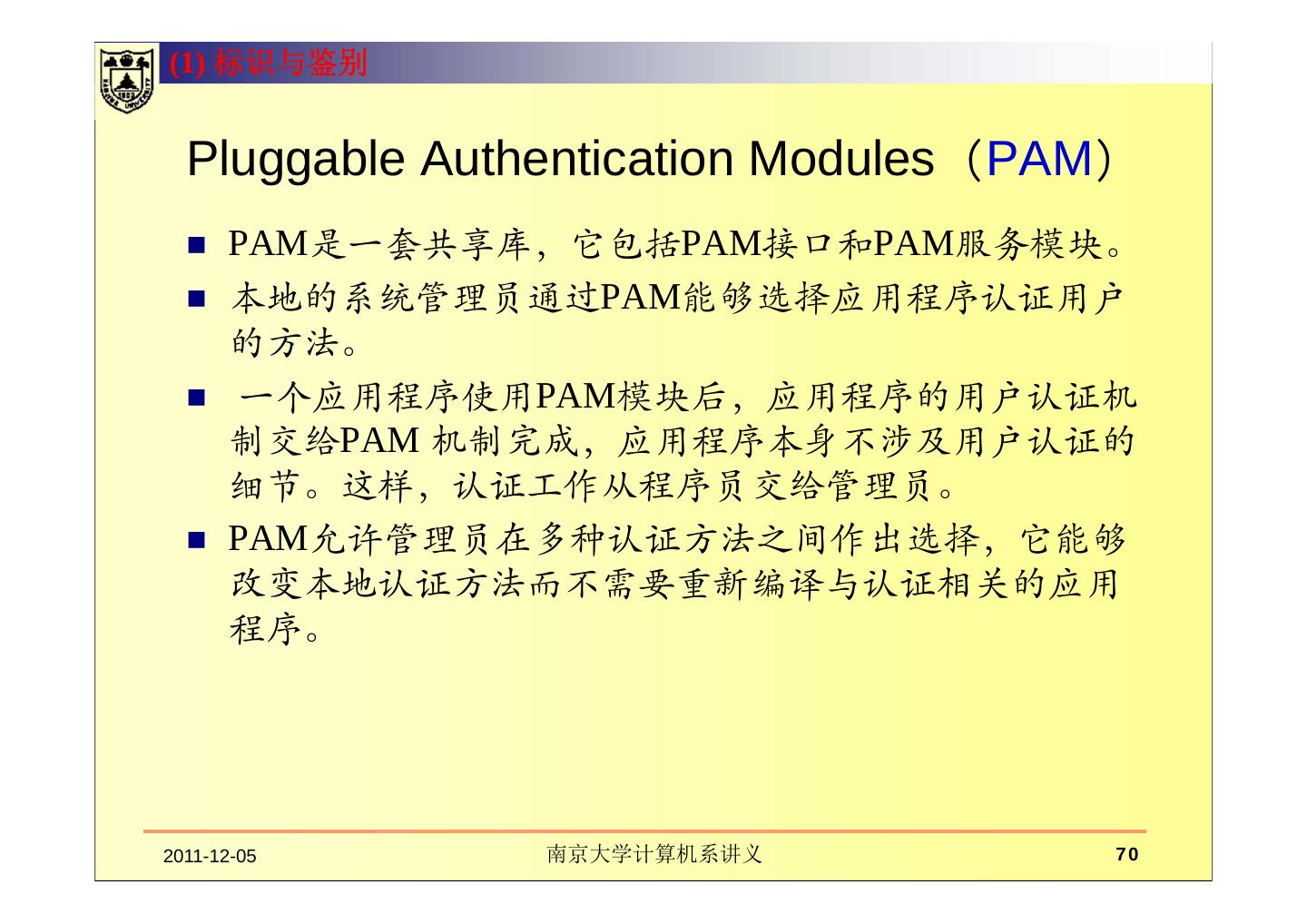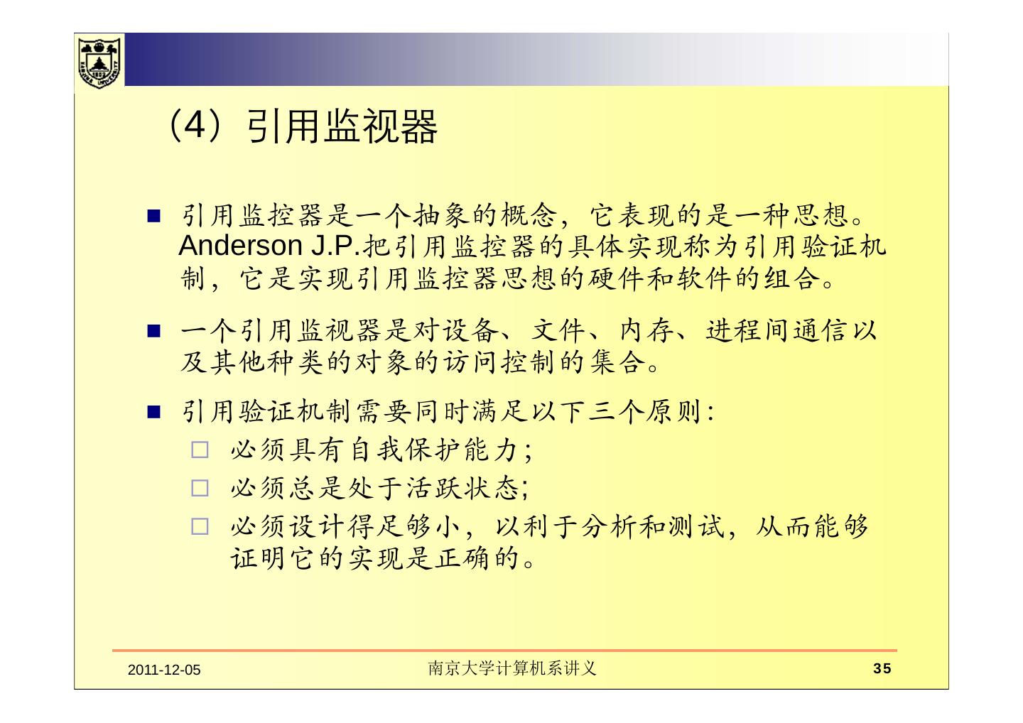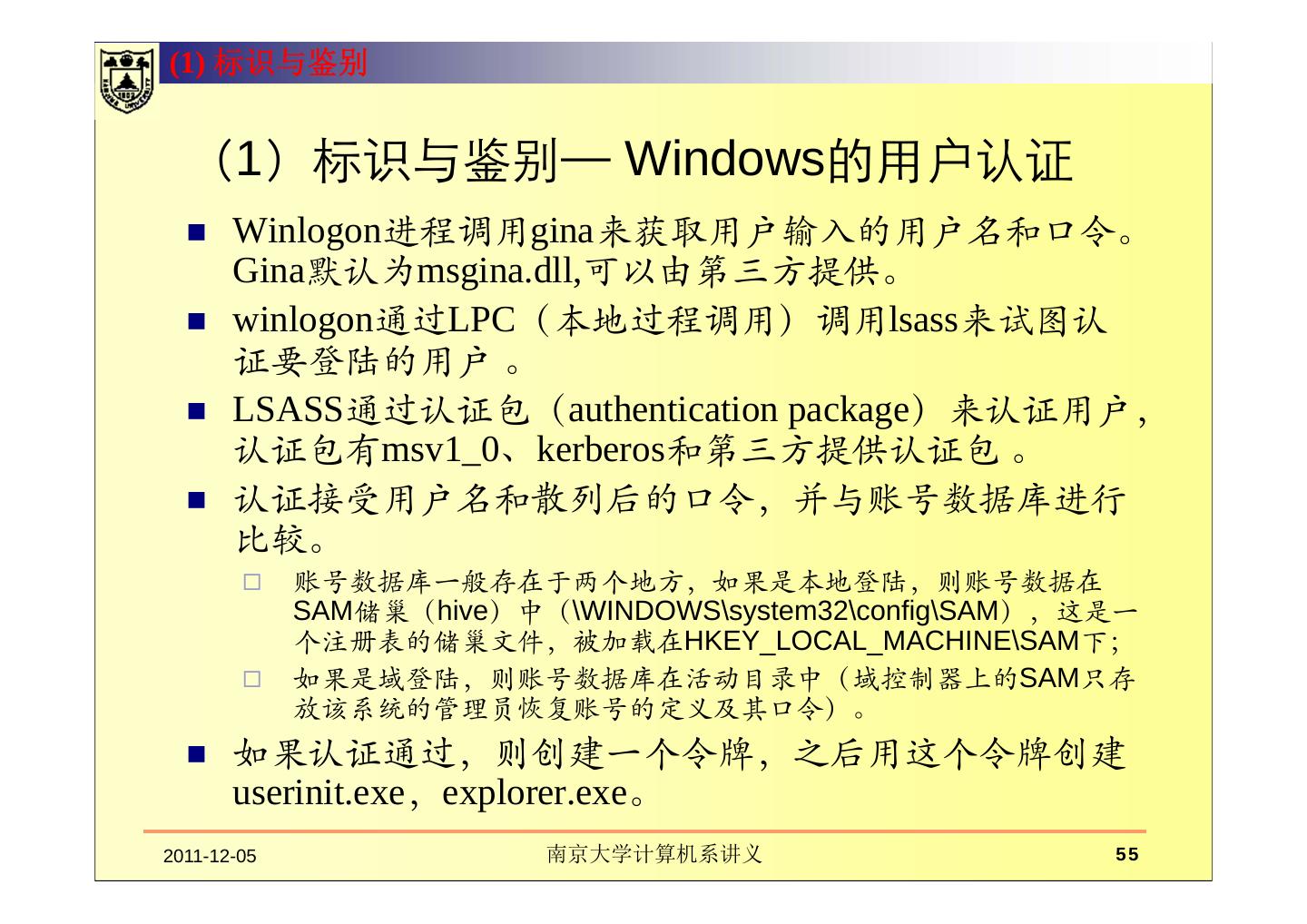 1 .第8章 操作系统安全 南京大学计算机系 黄皓教授 2011年12月5日