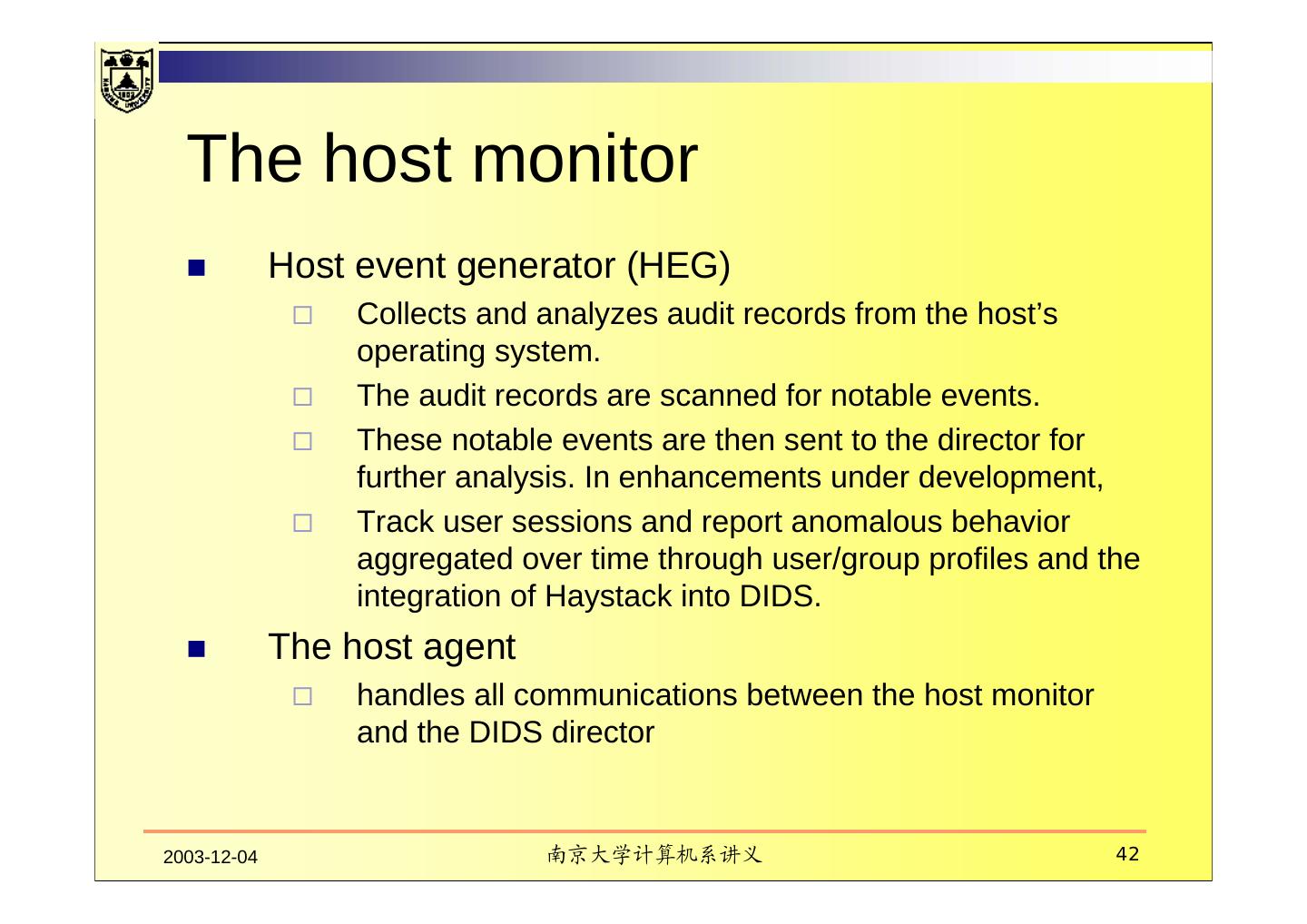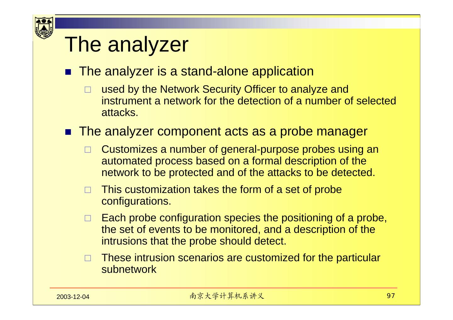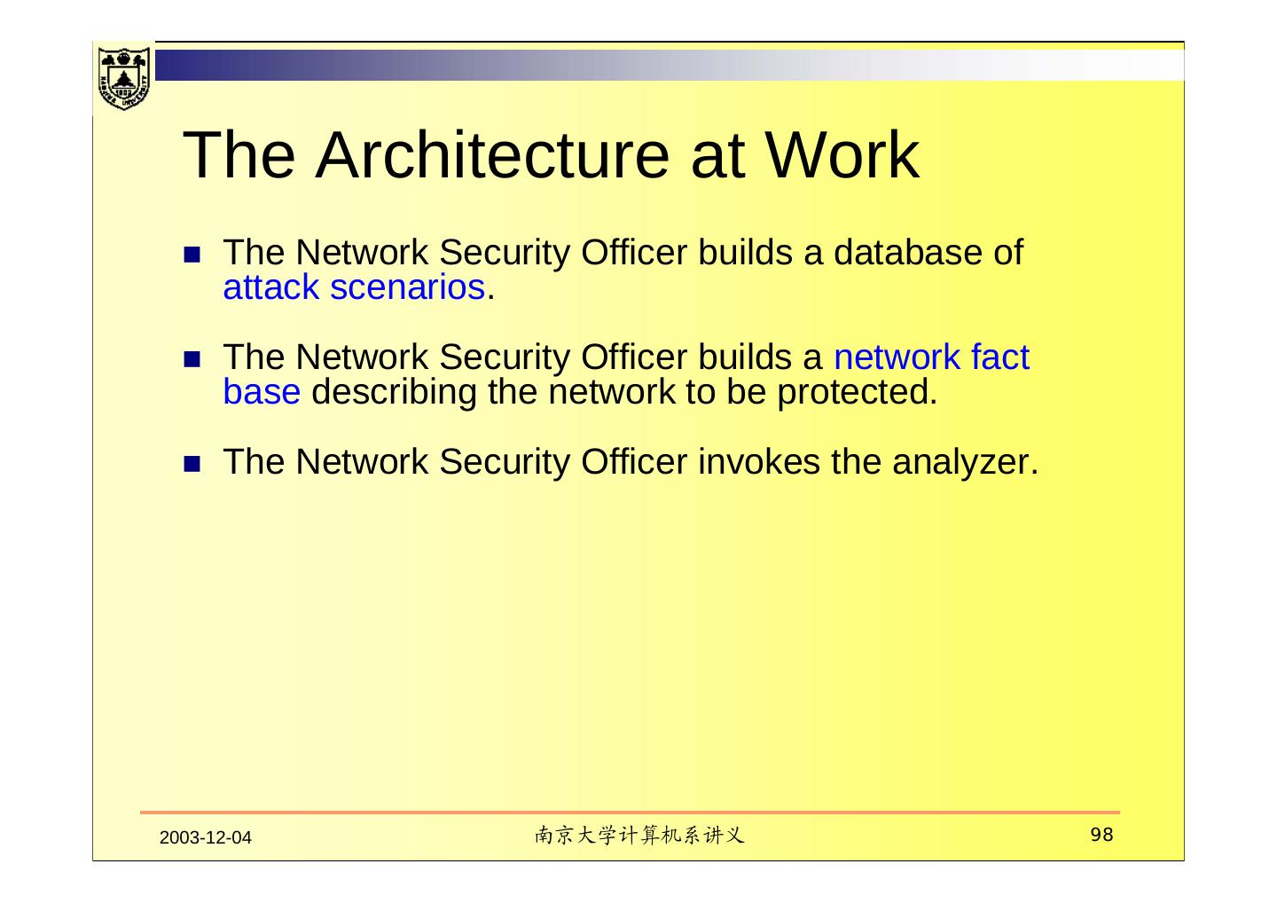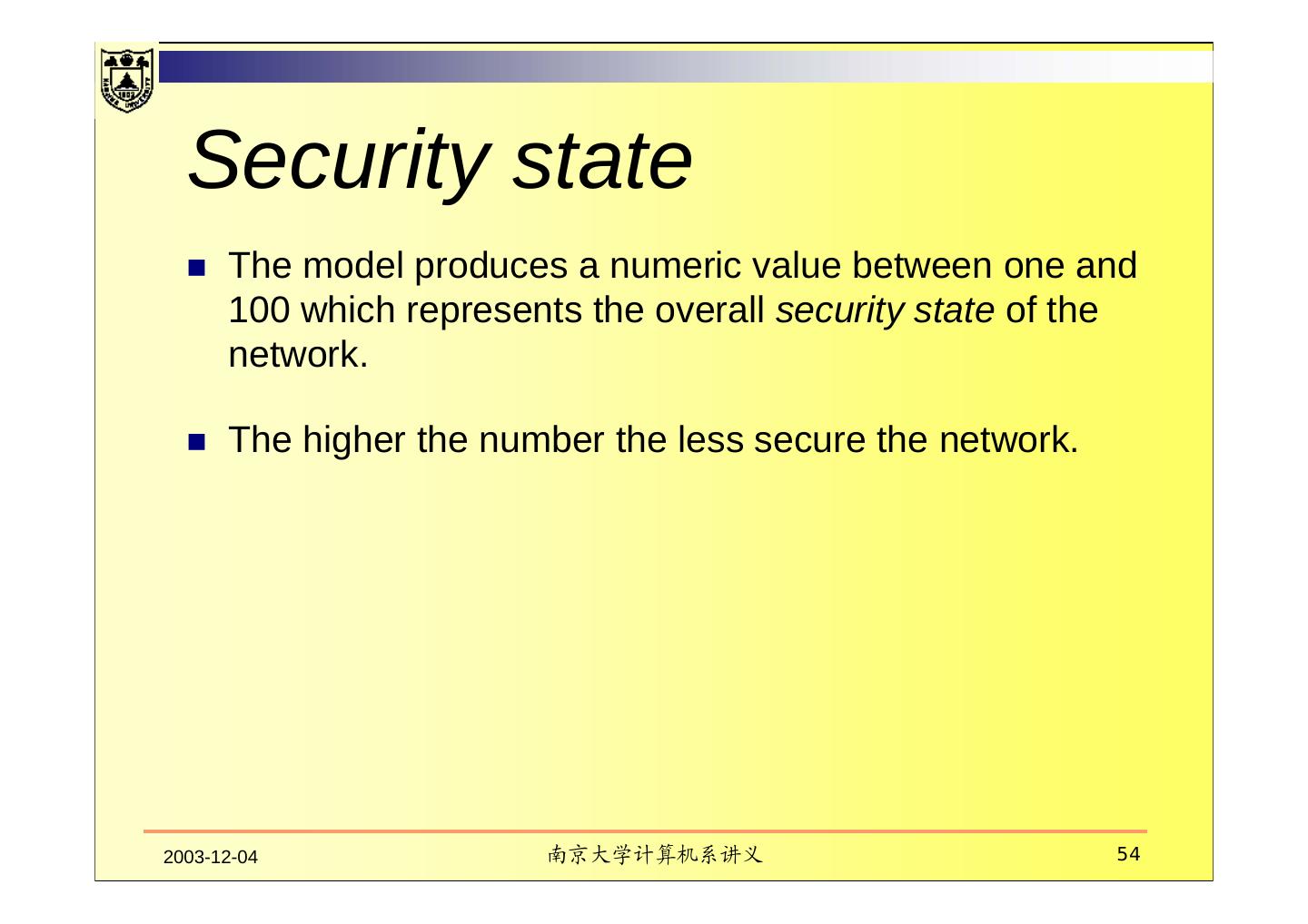 18 . The model is independent of any particular System application environment system vulnerability type of intrusion 2003-12-04 南京大学计算机系讲义 18