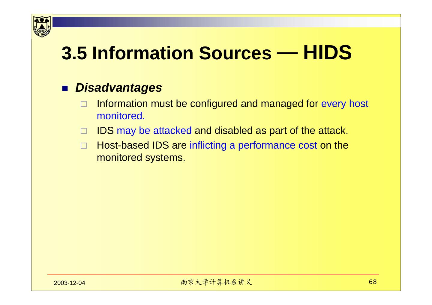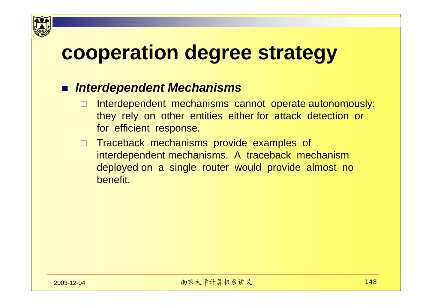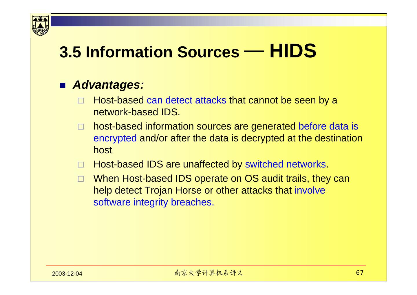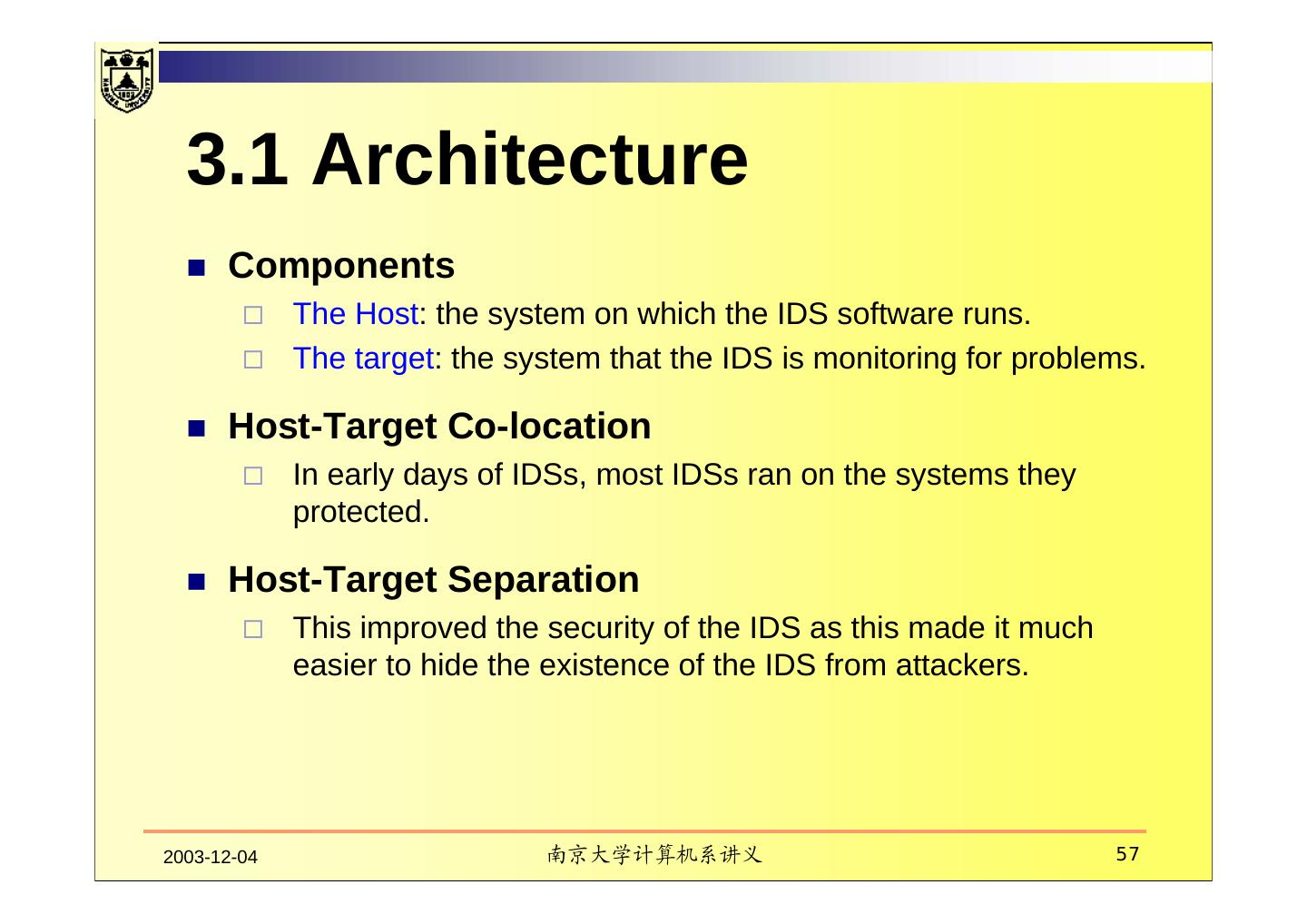 11 . Why should IDS (5) Quality control for security design and administration Highlight flaws in the design and management of security for the system Supports security management correcting those deficiencies before they cause an incident. Providing useful information about actual intrusions Collect relevant, detailed, and trustworthy information about the attack Supports incident handling and recovery efforts. 2003-12-04 南京大学计算机系讲义 11