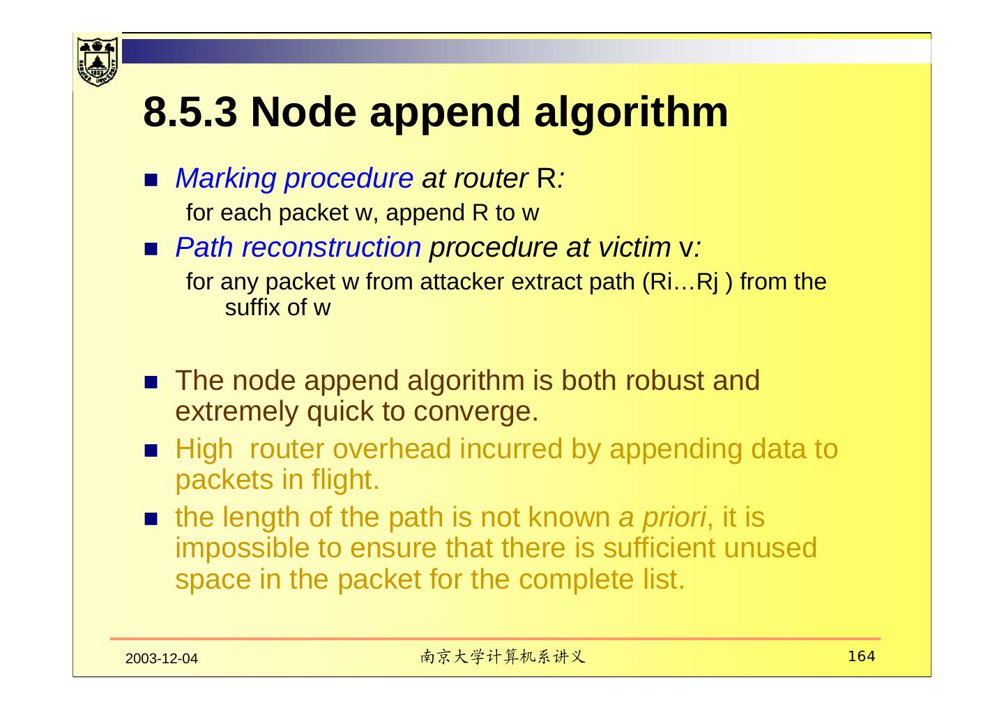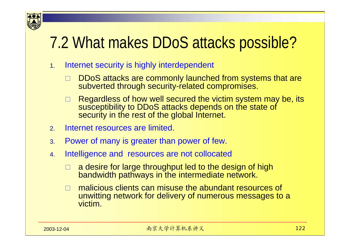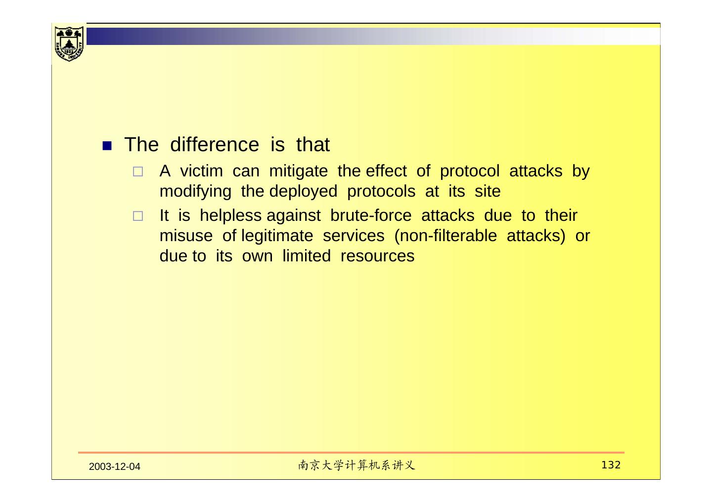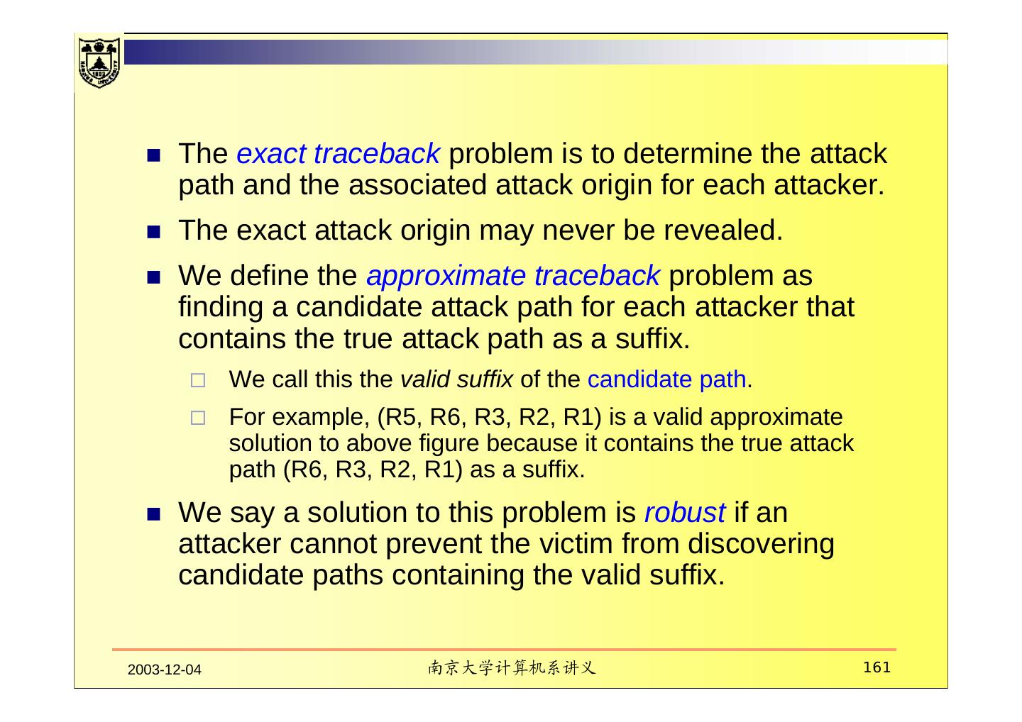 3 . [4] Jelena Mirkovic, Janice Martin and Peter Reiher, A Taxonomy of DDoS Attacks and DDoS Defense Mechanisms, Computer Science Department, University of California, Los Angeles, Technical report #020018. [5] Giovanni Vigna and Richard A. Kemmerer, NetSTAT: A Network-based Intrusion Detection Approach, Department of Computer Science, University of California Santa Barbara. 2003-12-04 南京大学计算机系讲义 3