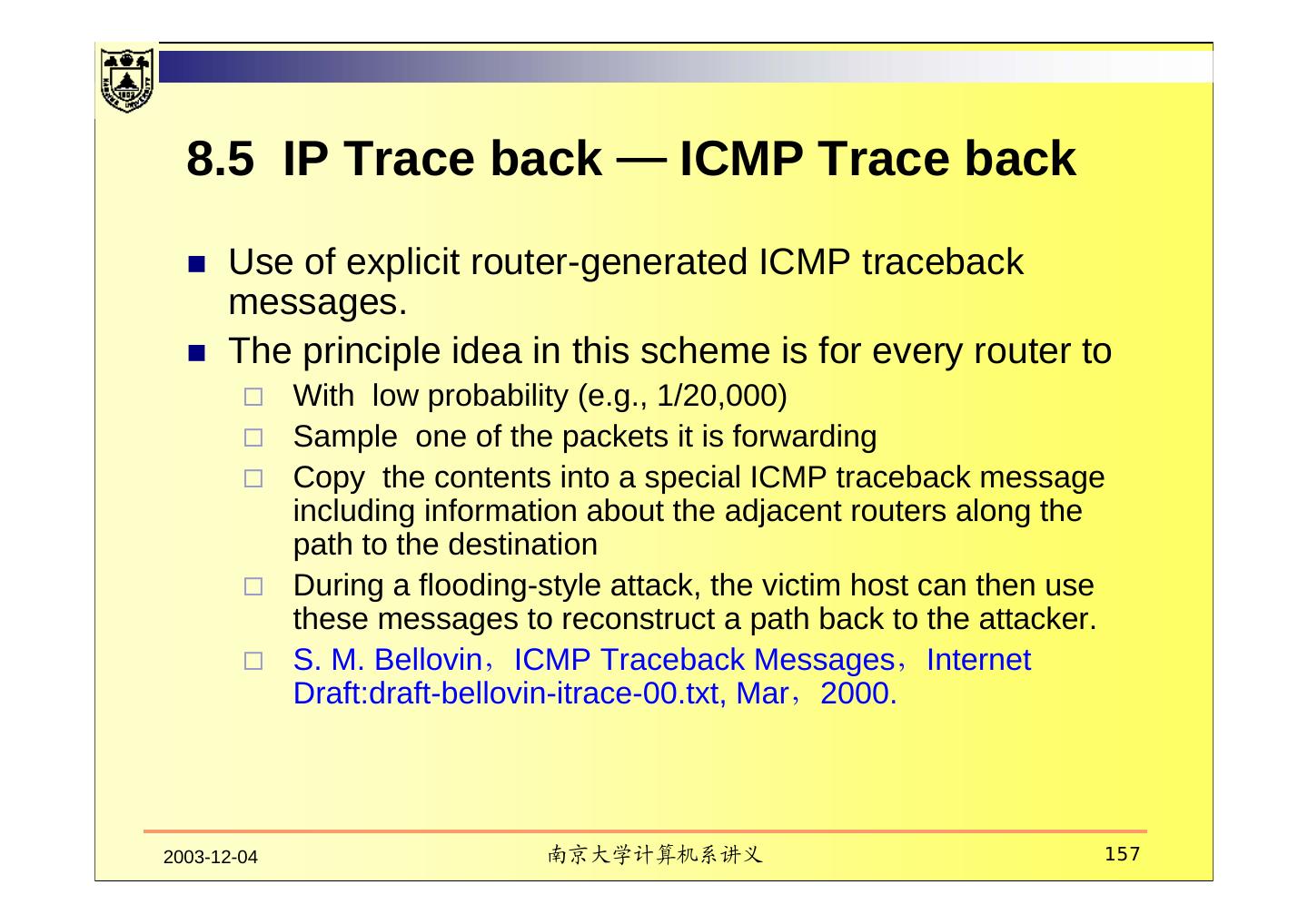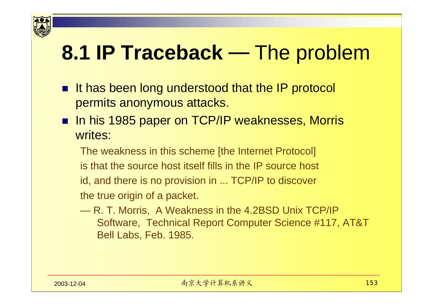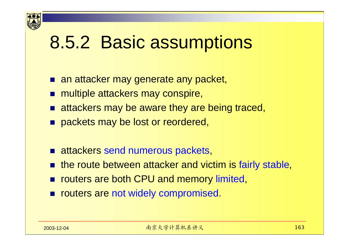 7 . 为什么需要IDS (1) Preventing problems increasing the perceived risk of discovery increasing punishment of attackers affect the behavior of individual users 2003-12-04 南京大学计算机系讲义 7