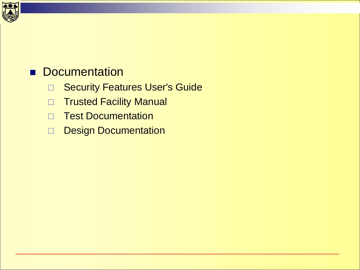 15 . Documentation Security Features User's Guide Trusted Facility Manual Test Documentation Design Documentation