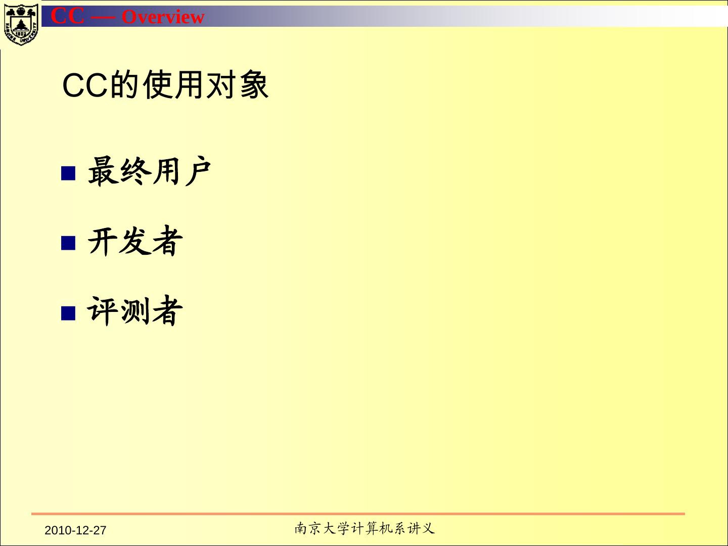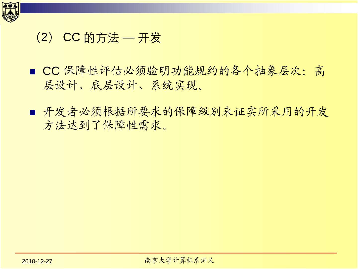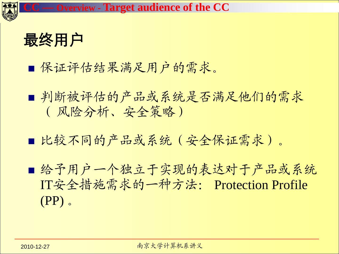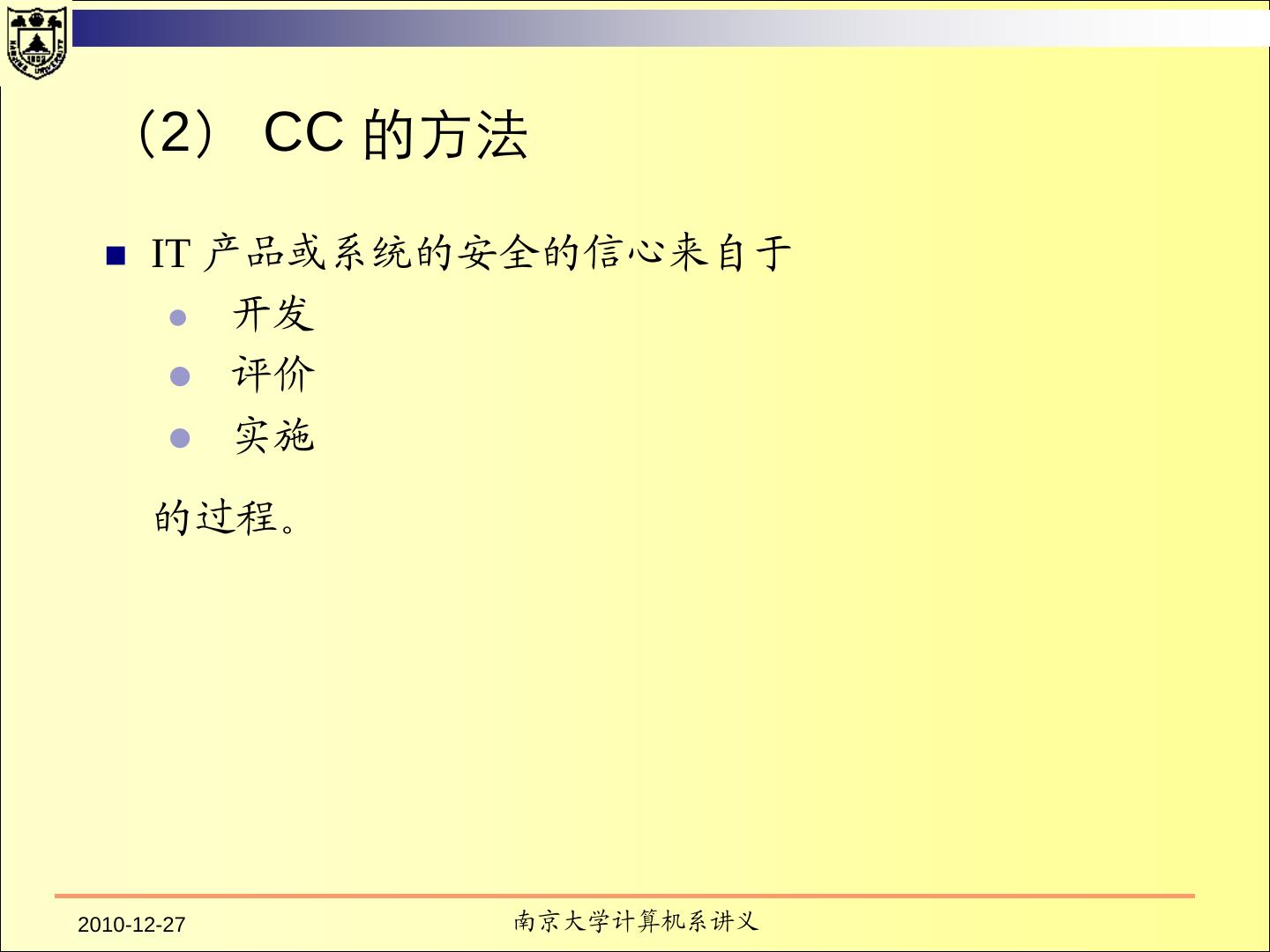 1 .TCSEC & CC 南京大学计算机系 黄皓 教授 2010年 12月27日