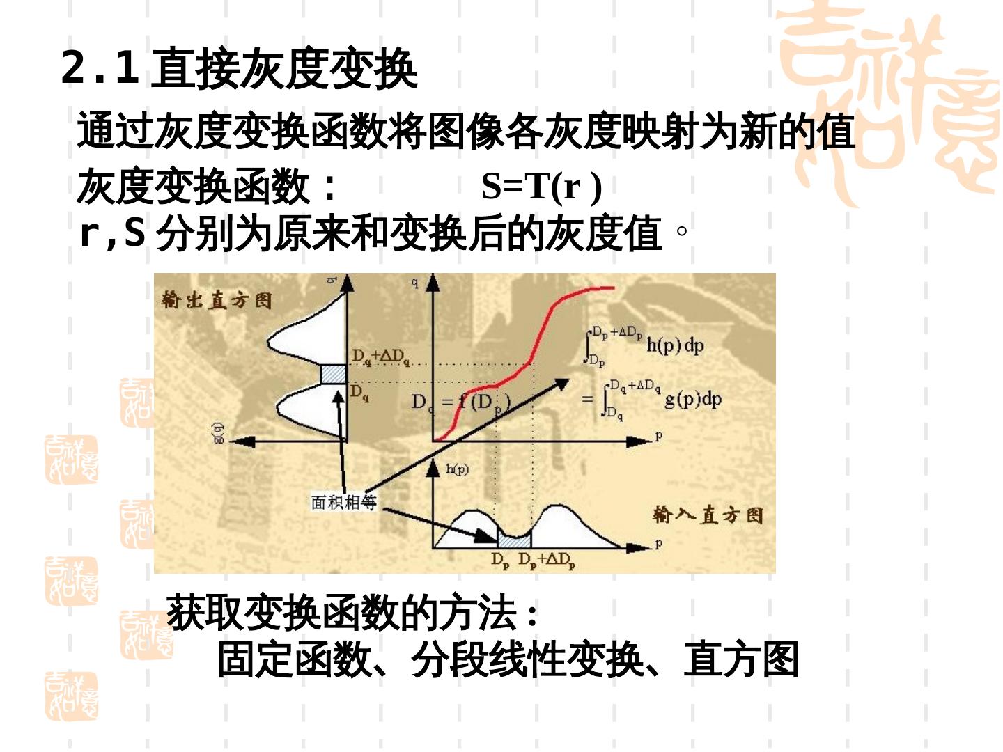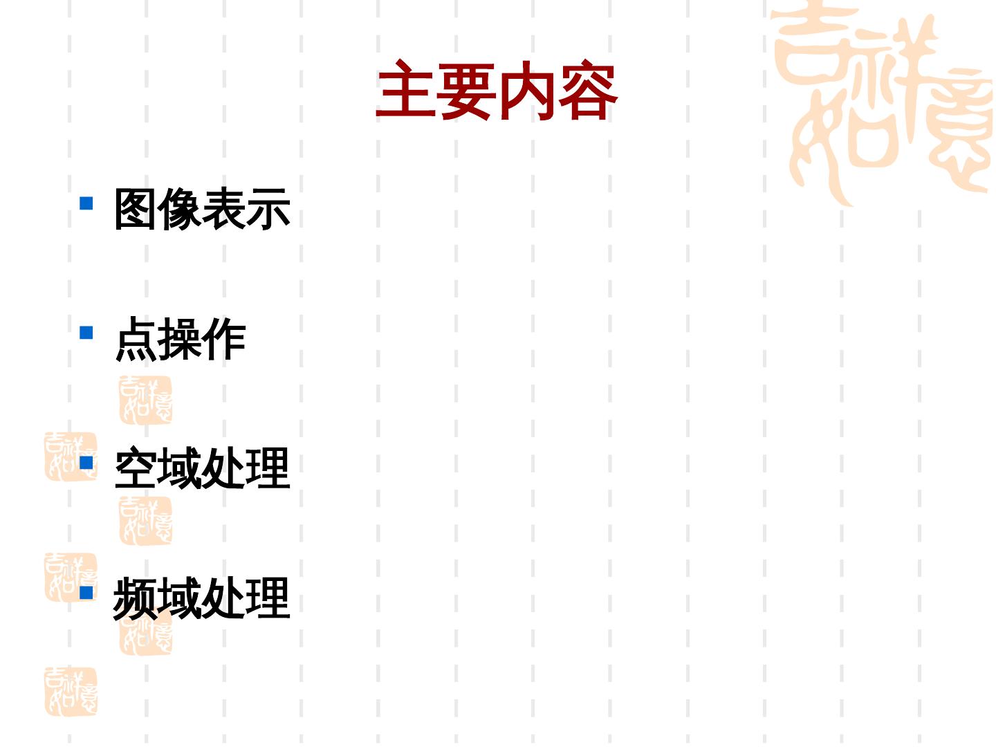 3 . 主要内容 图像表示 点操作 空域处理 频域处理