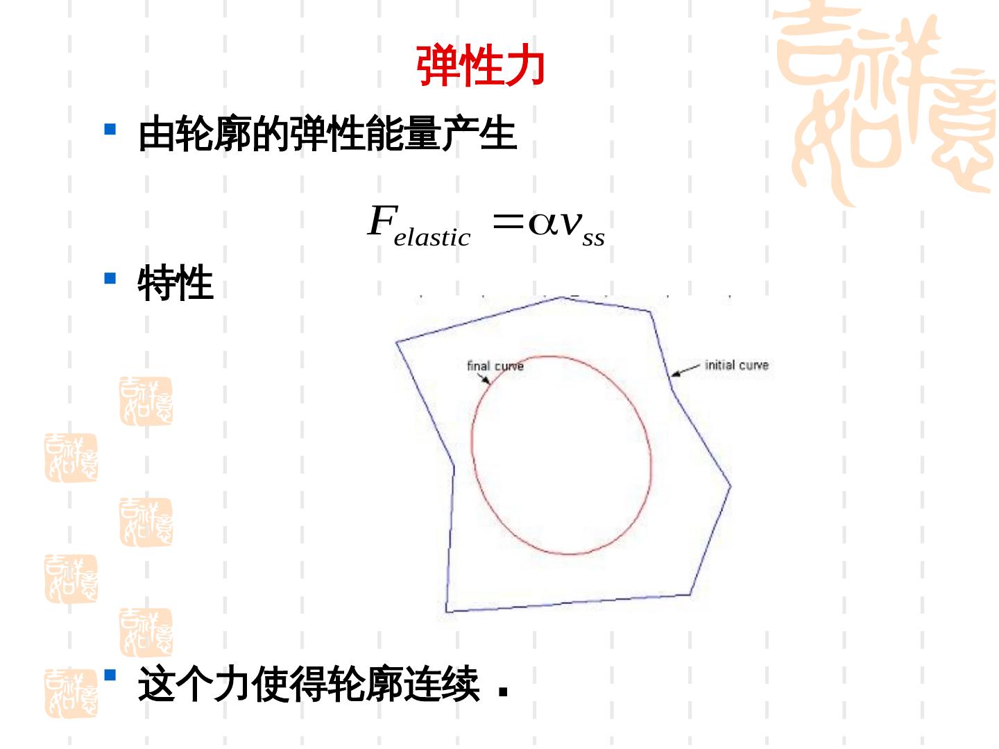 14 . 弹性力 由轮廓的弹性能量产生 Felastic vss 特性 这个力使得轮廓连续 .