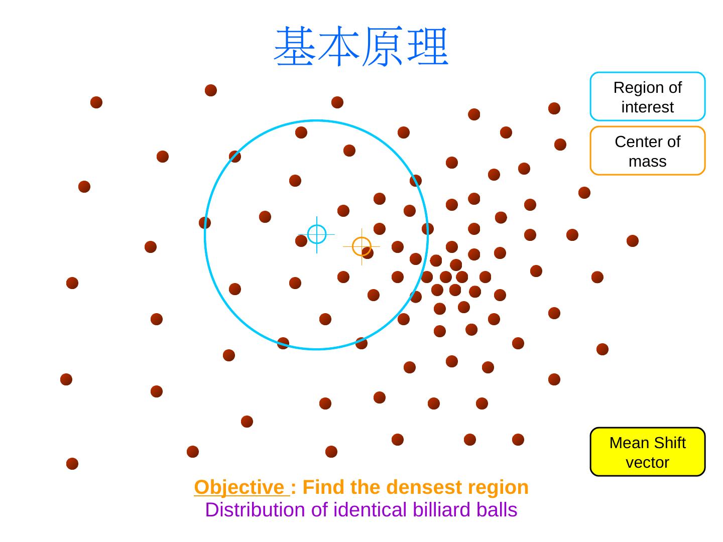 5 . 基本原理 Region of interest Center of mass Mean Shift vector Objective : Find the densest region Distribution of identical billiard balls