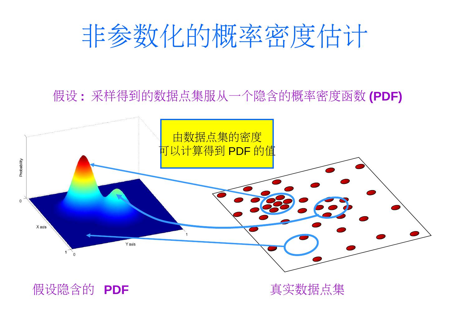 12 . 非参数化的概率密度估计 假设 : 采样得到的数据点集服从一个隐含的概率密度函数 (PDF)PDF) 由数据点集的密度 可以计算得到 PDF 的值 假设隐含的 PDF 真实数据点集