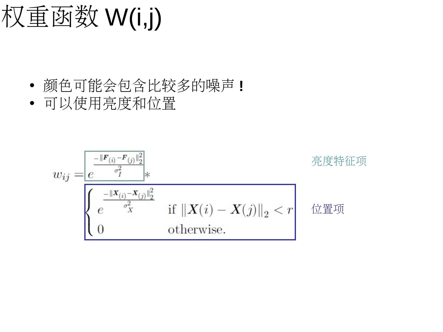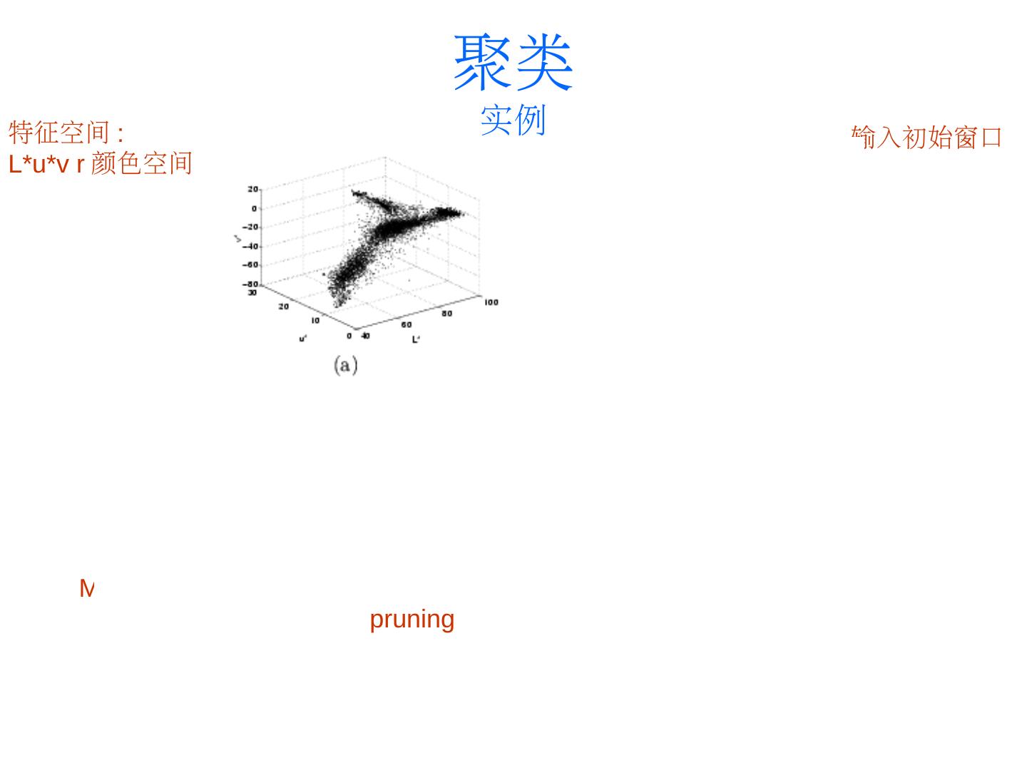 22 .核函数密度估计 (PDF)Kernel Density Estimation) 梯度 Gradient 1 n 不估计 PDF ! P( x) K ( x - xi ) n i 1 只估计概率密度的梯度 假设使用的核函数 x - xi 2 形式为 : K (x - xi ) ck h 可以得到 : Size of window n x g i i c n c n P ( x) ki g i n i 1 x n i 1 n i 1 i 1 gi g(x) k (x)
