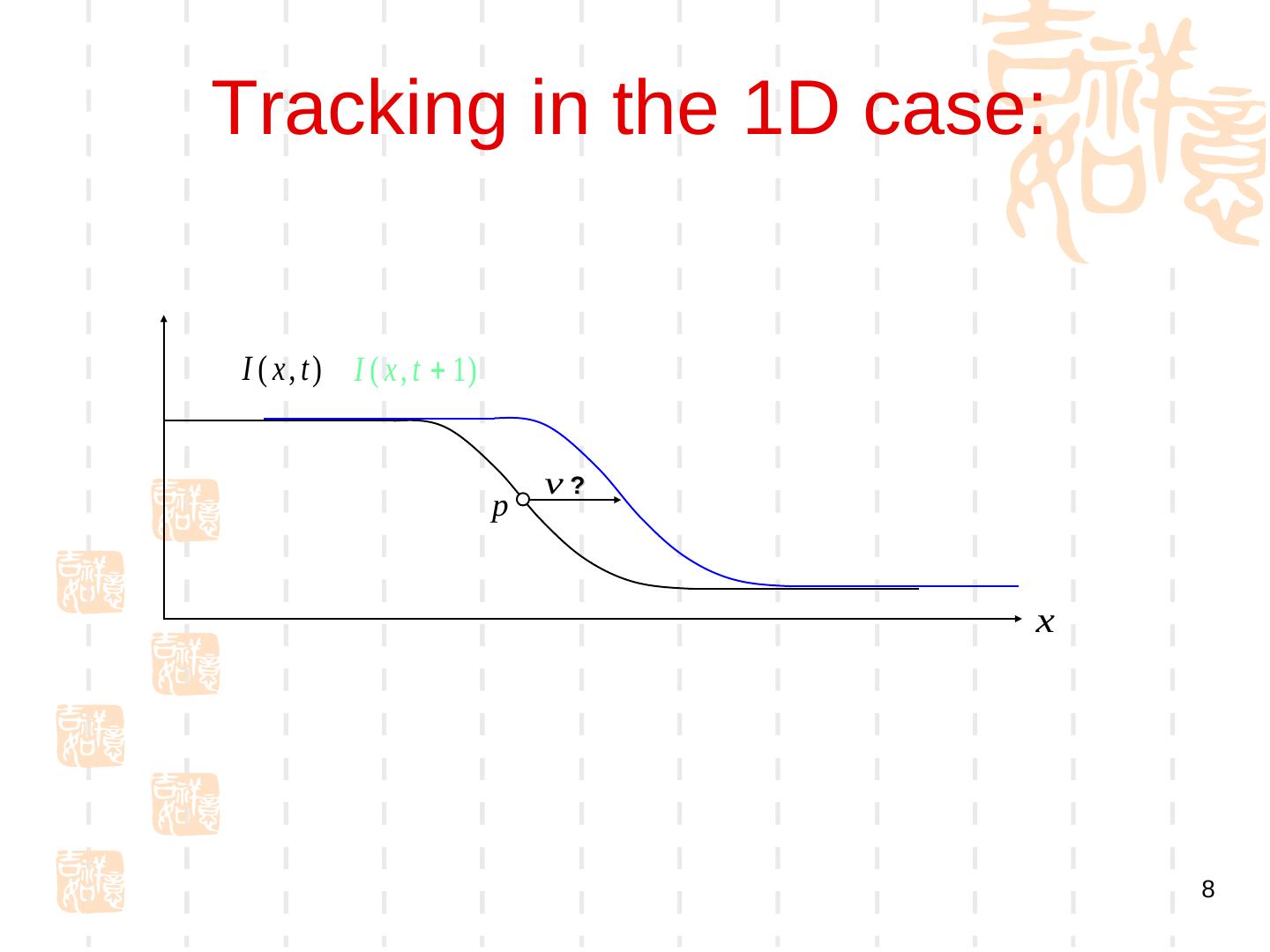 8 .Tracking in the 1D case: I ( x , t ) I ( x , t 1) v? p x 8