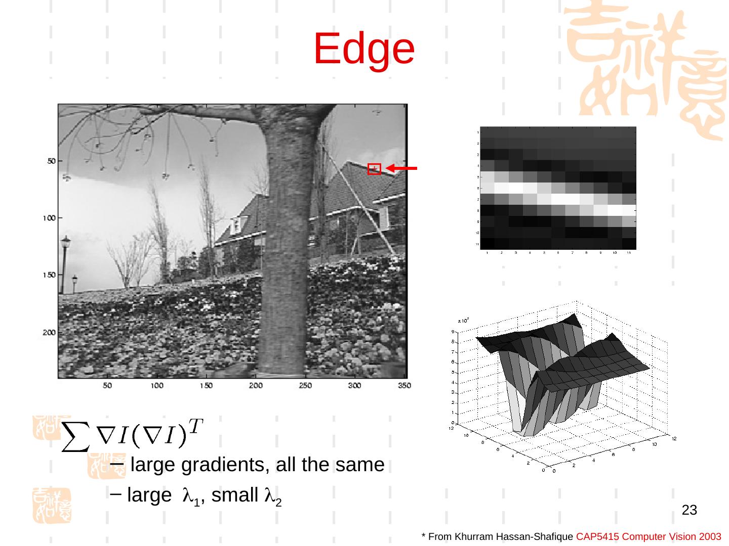23 . Edge – large gradients, all the same – large1, small 2 23 * From Khurram Hassan-Shafique CAP5415 Computer Vision 2003