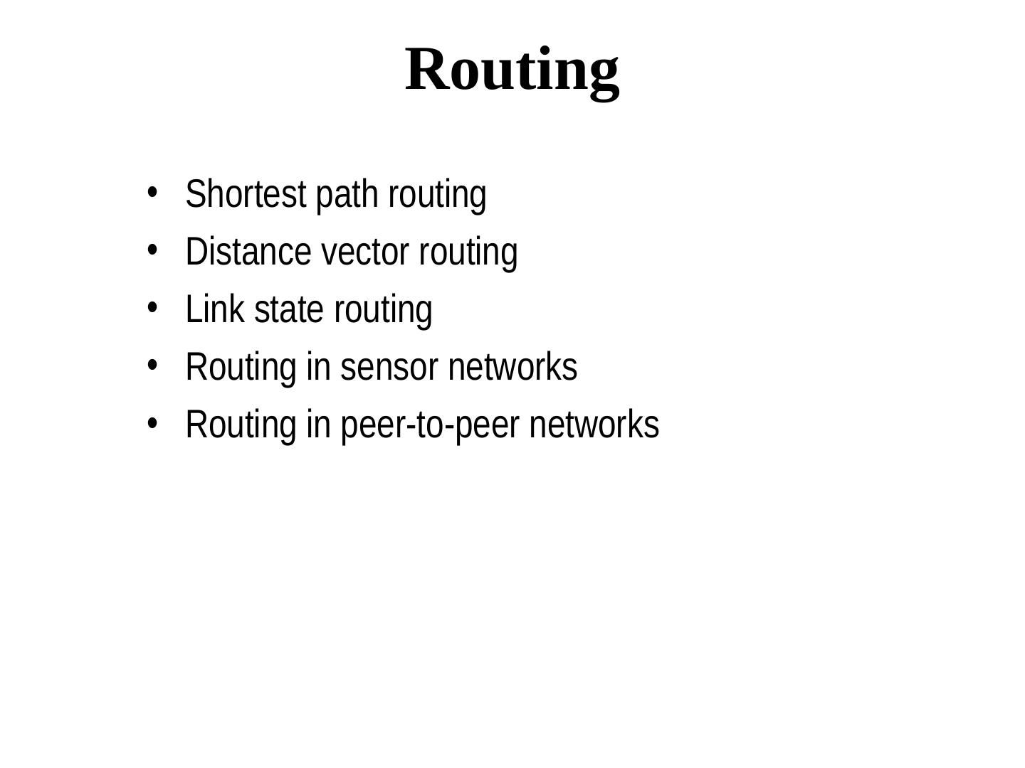 3 . Routing • Shortest path routing • Distance vector routing • Link state routing • Routing in sensor networks • Routing in peer-to-peer networks
