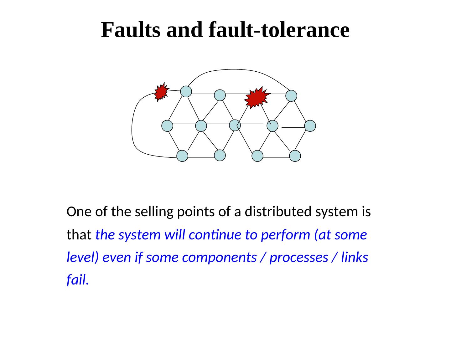 2 . Faults and fault-tolerance One of the selling points of a distributed system is that the system will continue to perform (at some level) even if some components / processes / links fail.