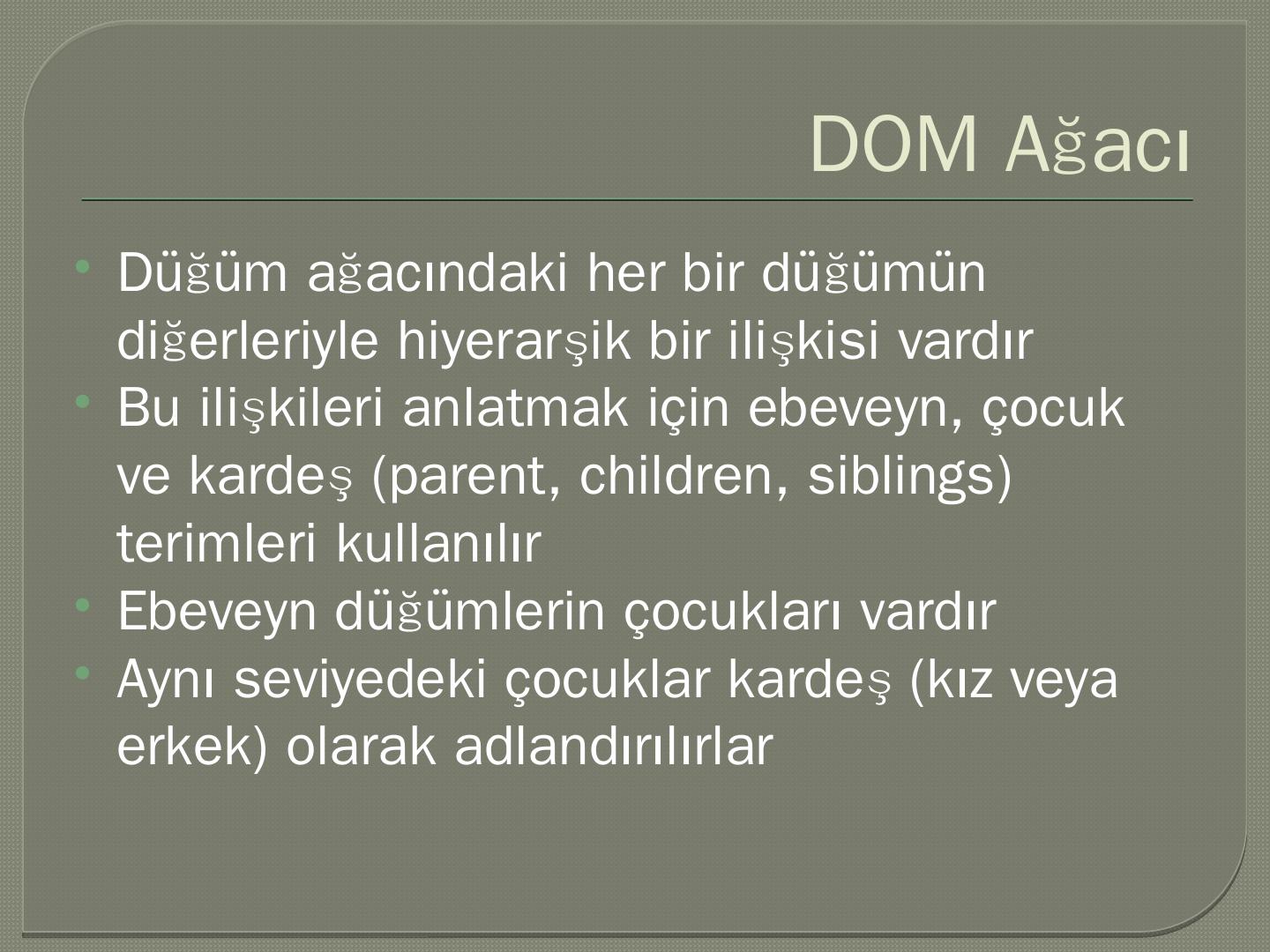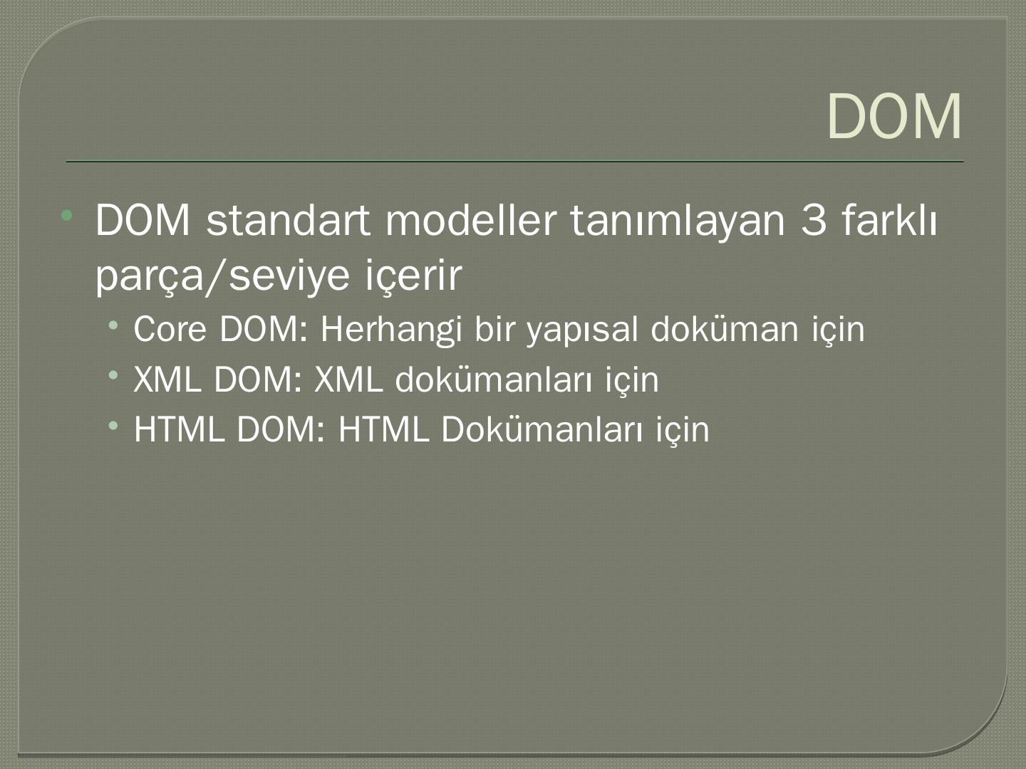 DOM bir W3C (World Wide Web Consortium) standardıdır; XML ve HTML gibi dokümanlara erişim için standart bir yol tanımlar; "The W3C Document Object ...
